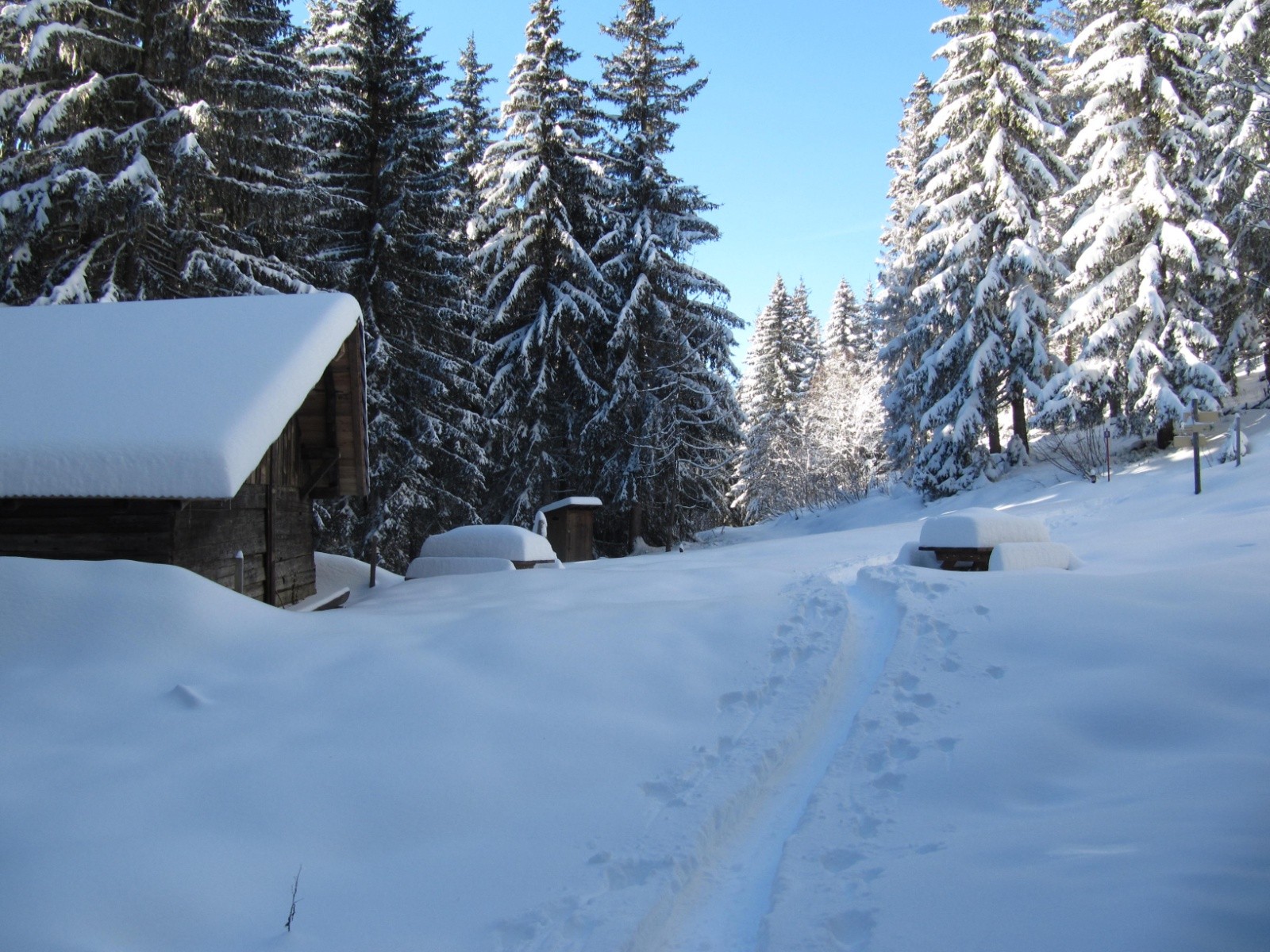 Les dernières chutes de neige ont déposé une quantité suffisante pour partir skis aux pieds depuis le parking.