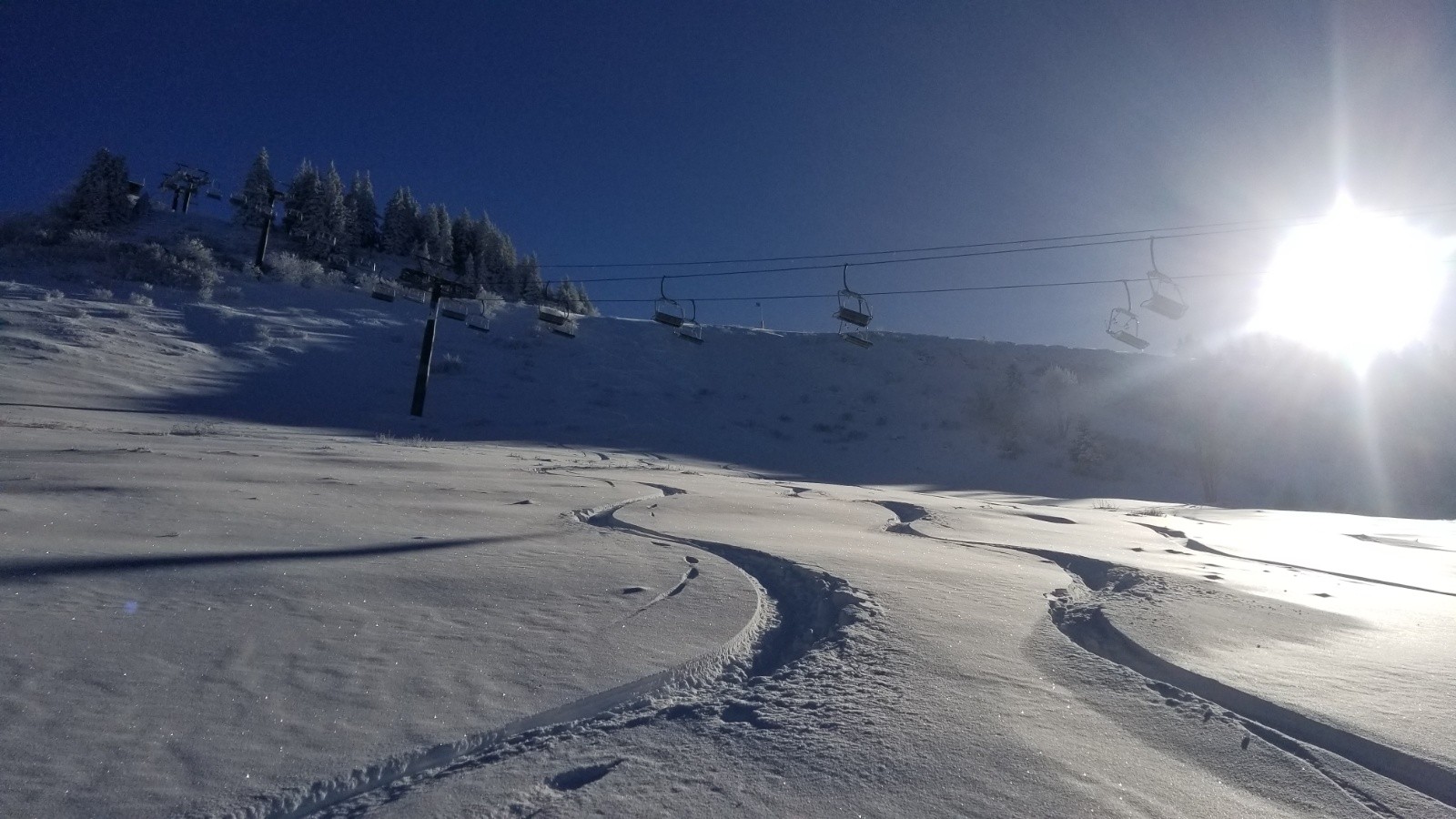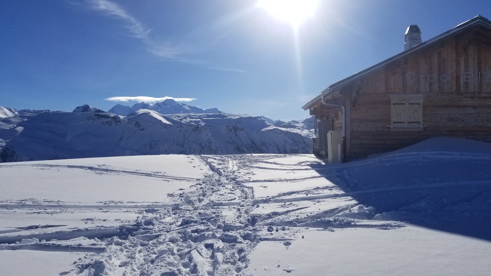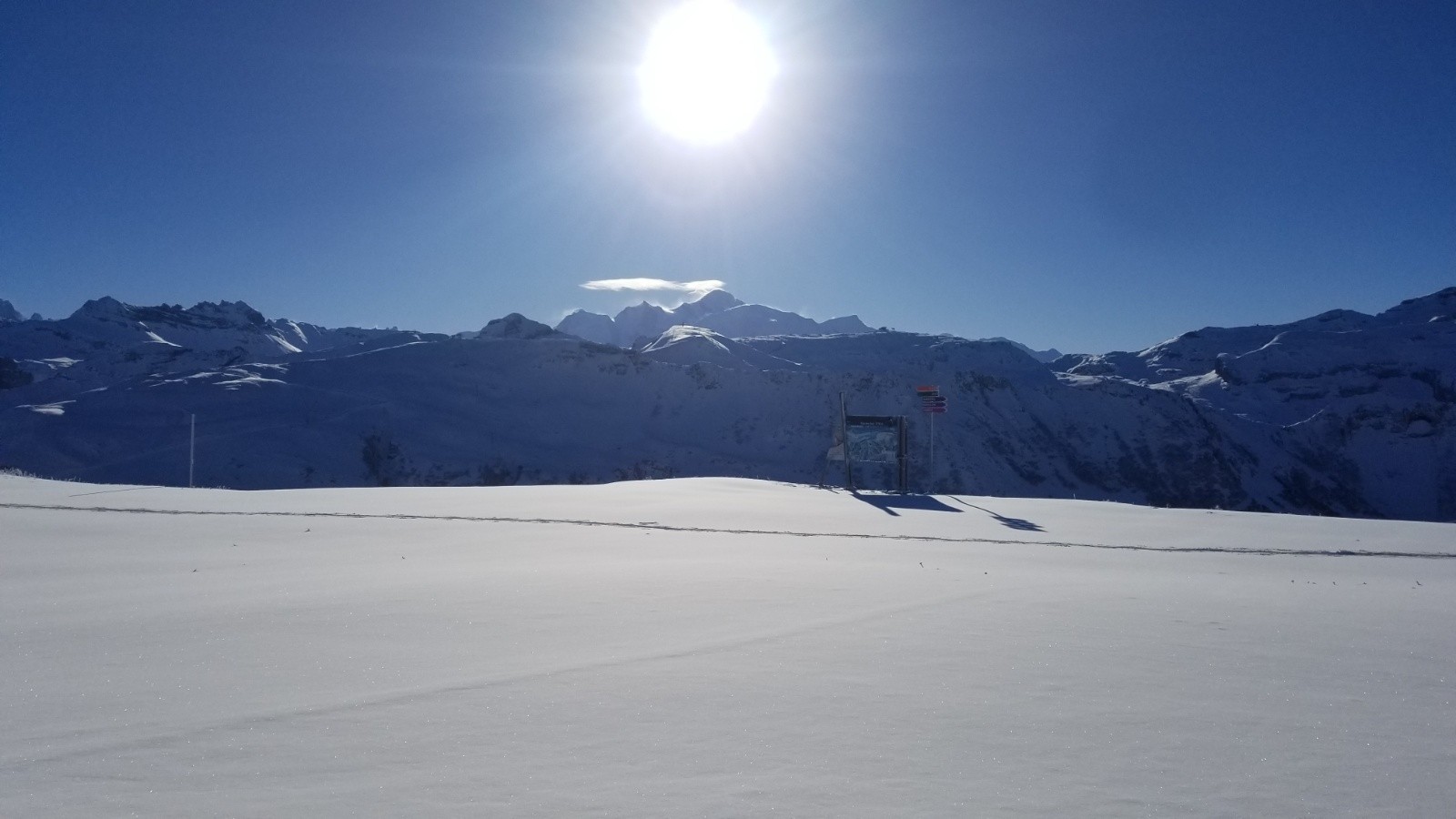 Enfin, en mieux, sauf sur le bas qui est ravagé par les traces de dameuses et piégeux avec les tas de neige des canons qui ont craché tout le matin!