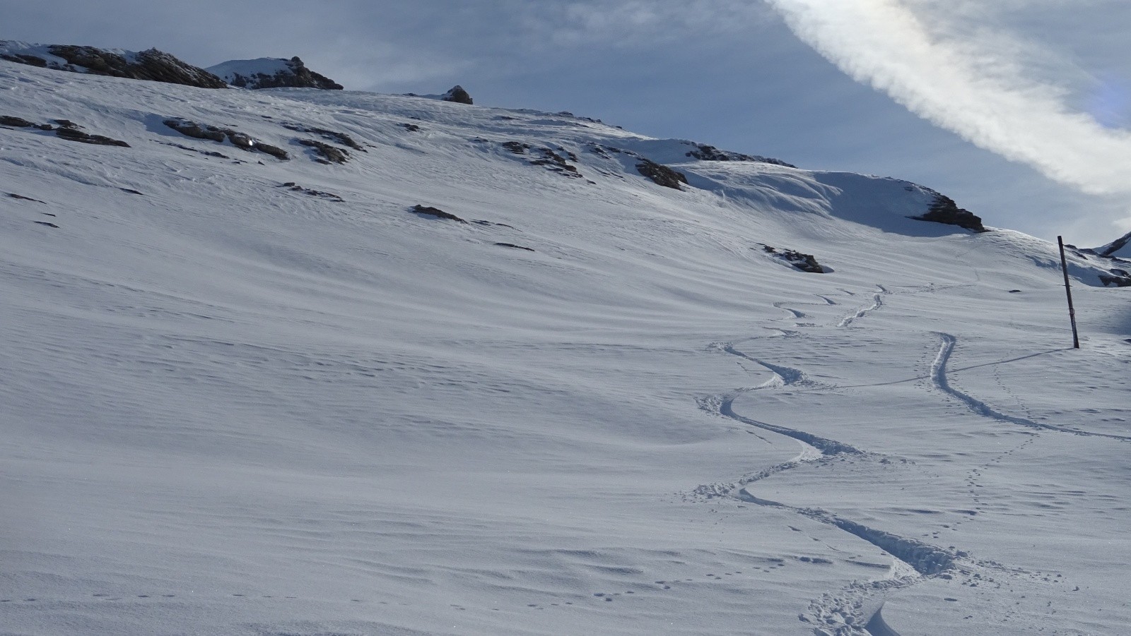 La neige est revenue en quantitié, mais le fond avait disparu, attention aux requins, y'en a quelques. Toujours superbe itinéraire hors des sentiers battus.