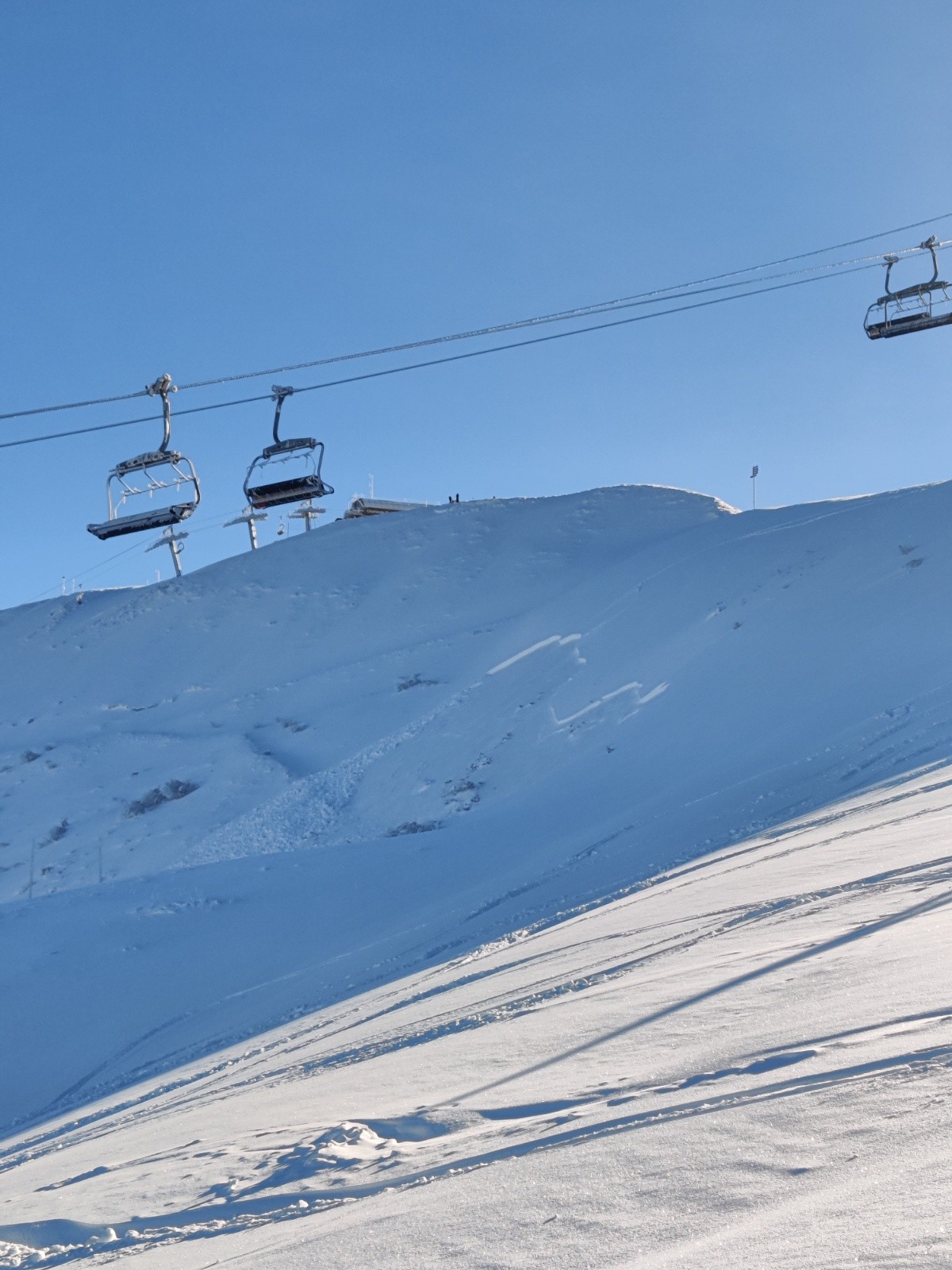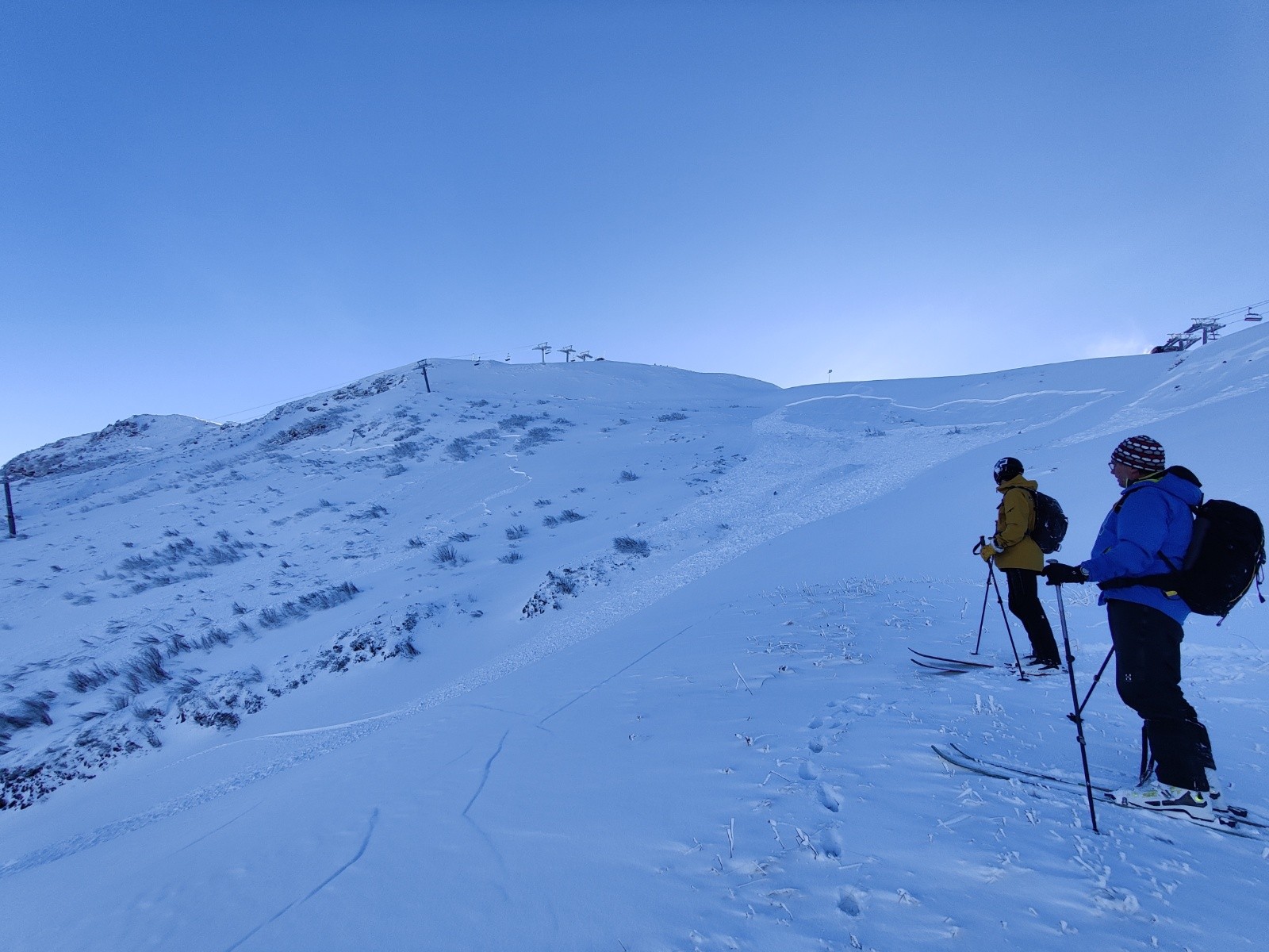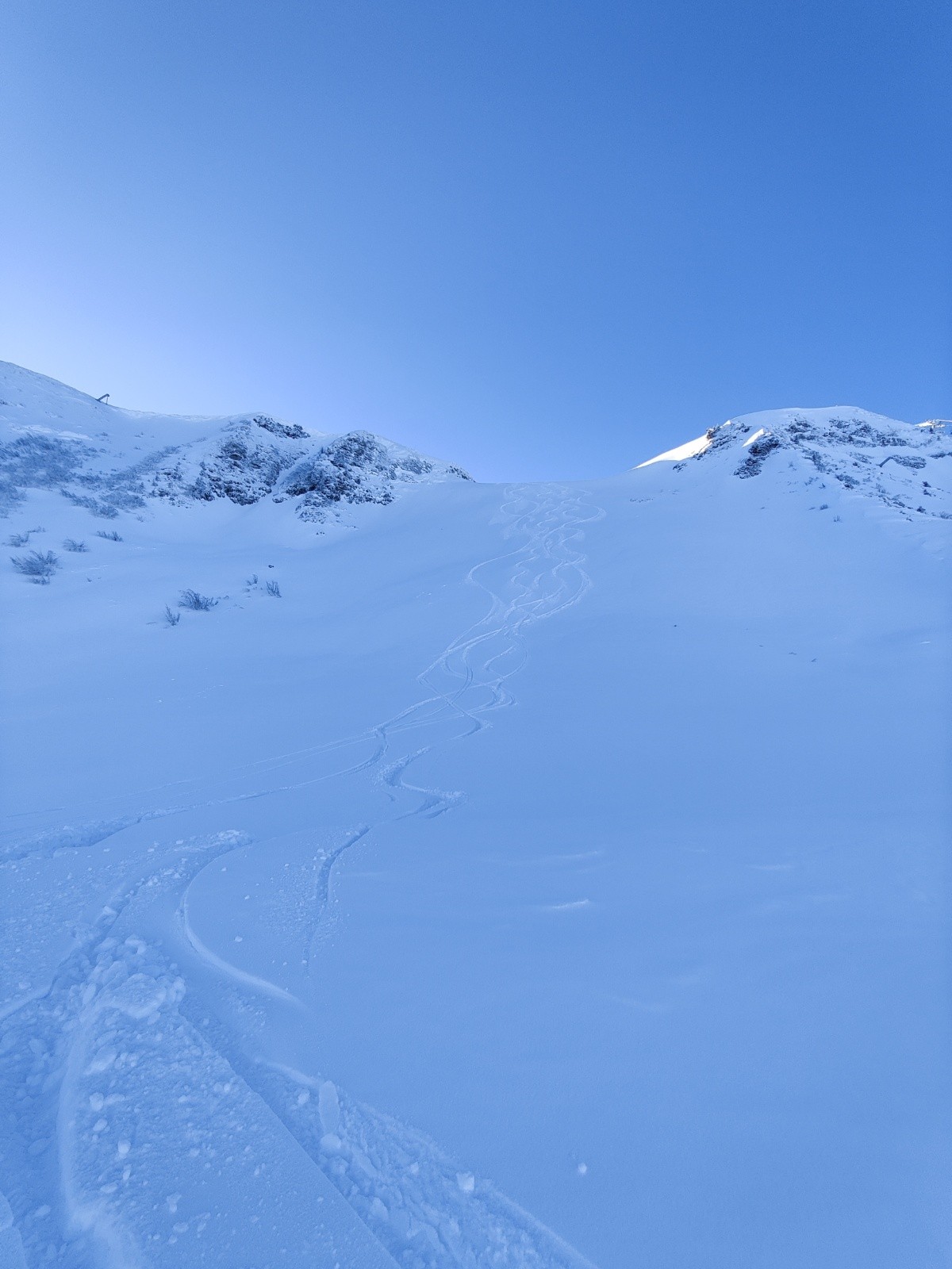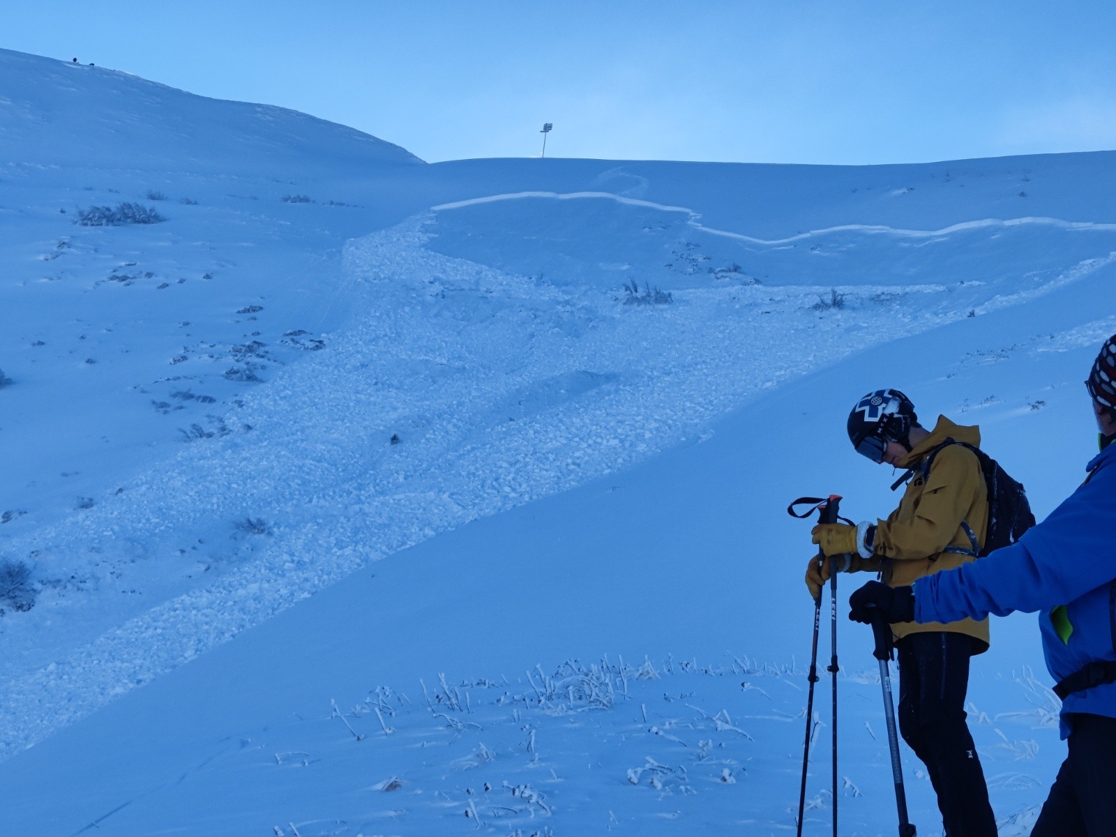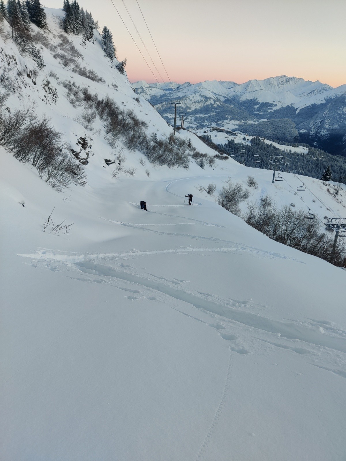 Activité avalancheuse : on a fait partie 3 grosses plaques dans les faces Nord à nord est sous les crêtes, cassure de 40 cm environ pour des largeurs de 20 à 60 m