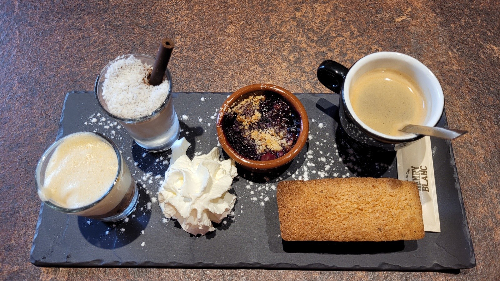L'avantage quand on part en randonnée sans ambition en terme de ski, c'est qu'on n'est jamais déçu. Du coup, la sortie a été validée grâce au soleil, aux beaux paysages cantaliens et pour finir une bonne bière et un café gourmand délicieux.