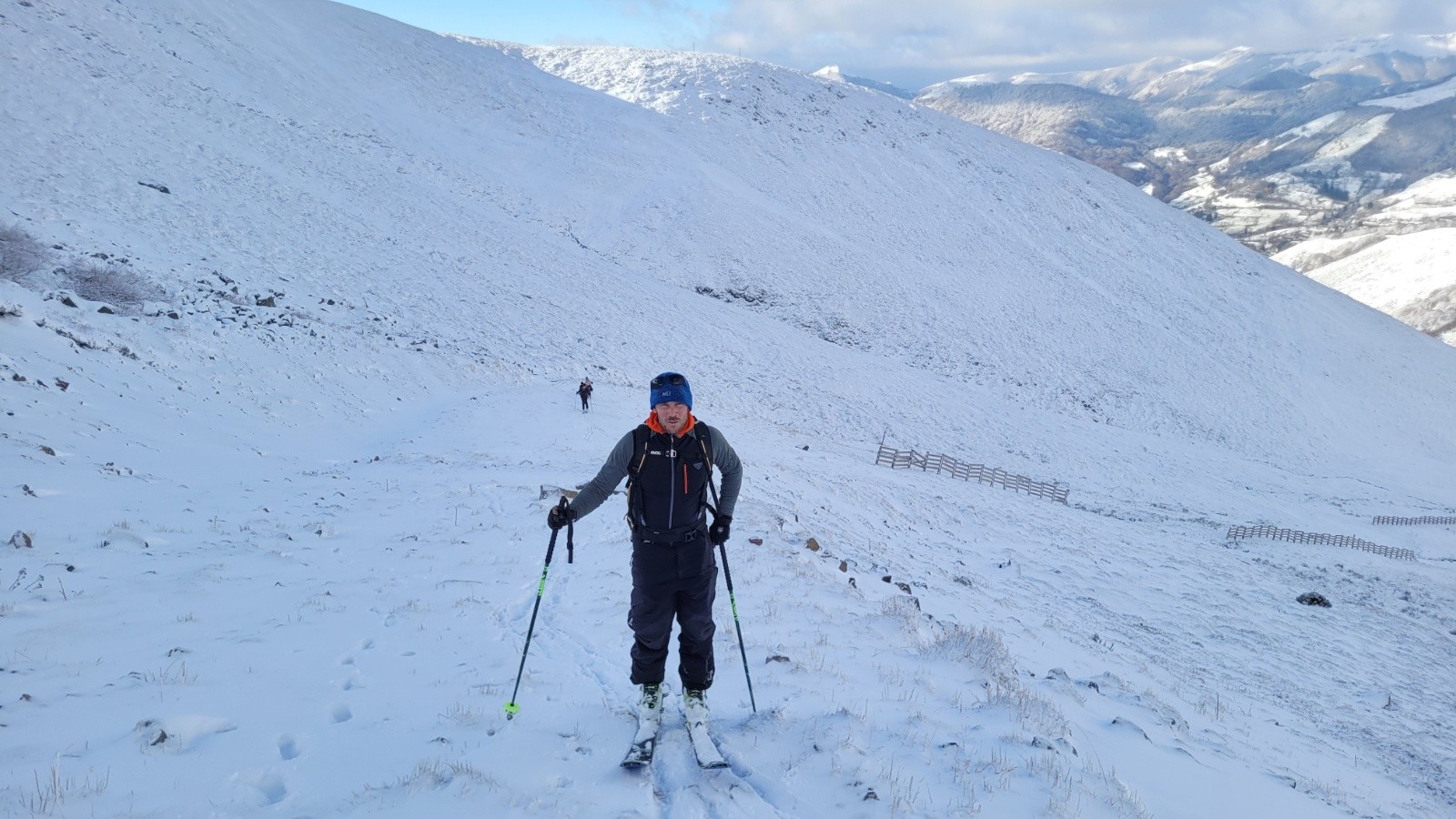 Mauvaises conditions: pas de sous-couche, entre 10 et 15 cm max de poudre tassée pas évidente à skier. On a touché à de nombreuses reprises soit la prairie ou les bruyères (pas trop gênant), soit la terre et les cailloux ( moins moelleux pour les spatules).