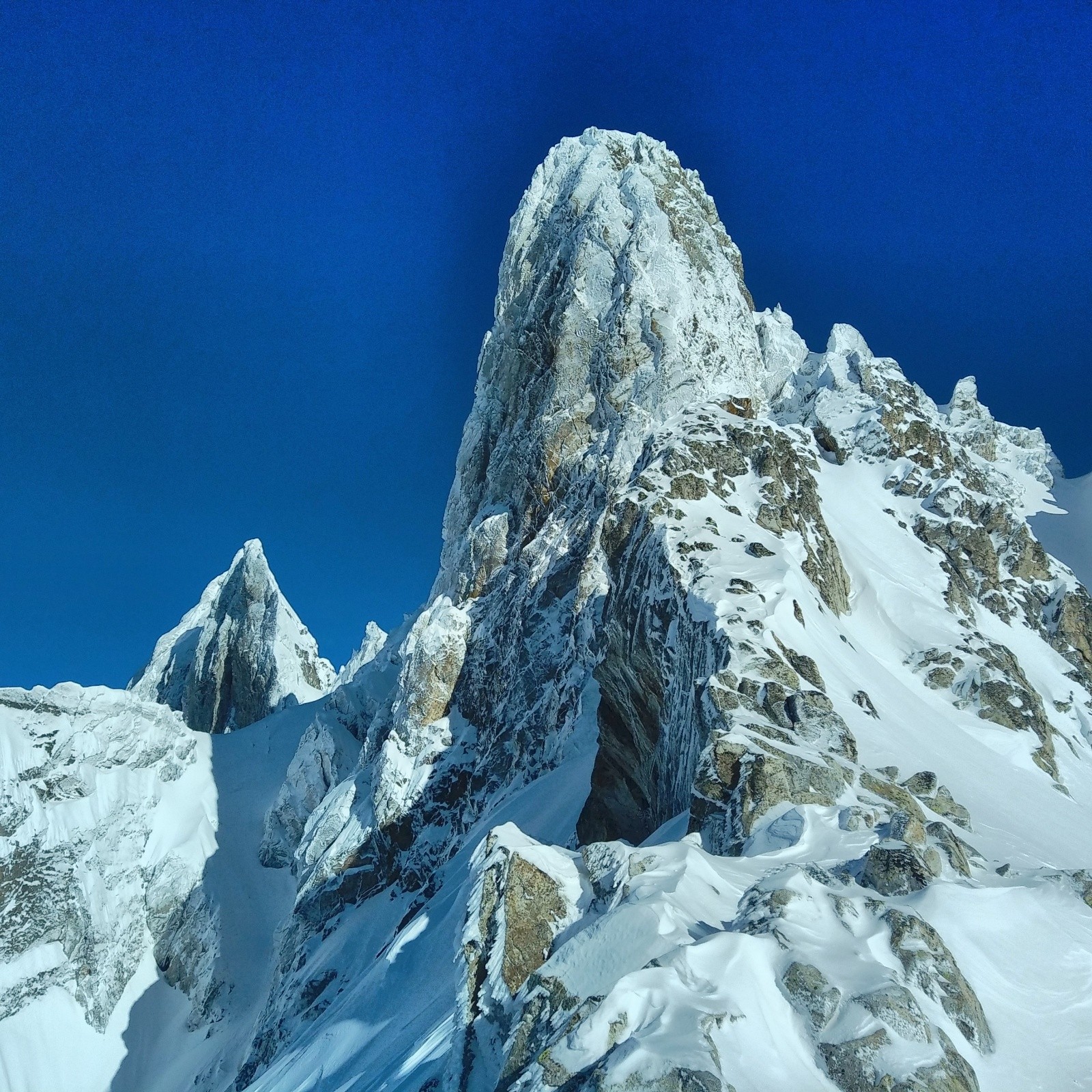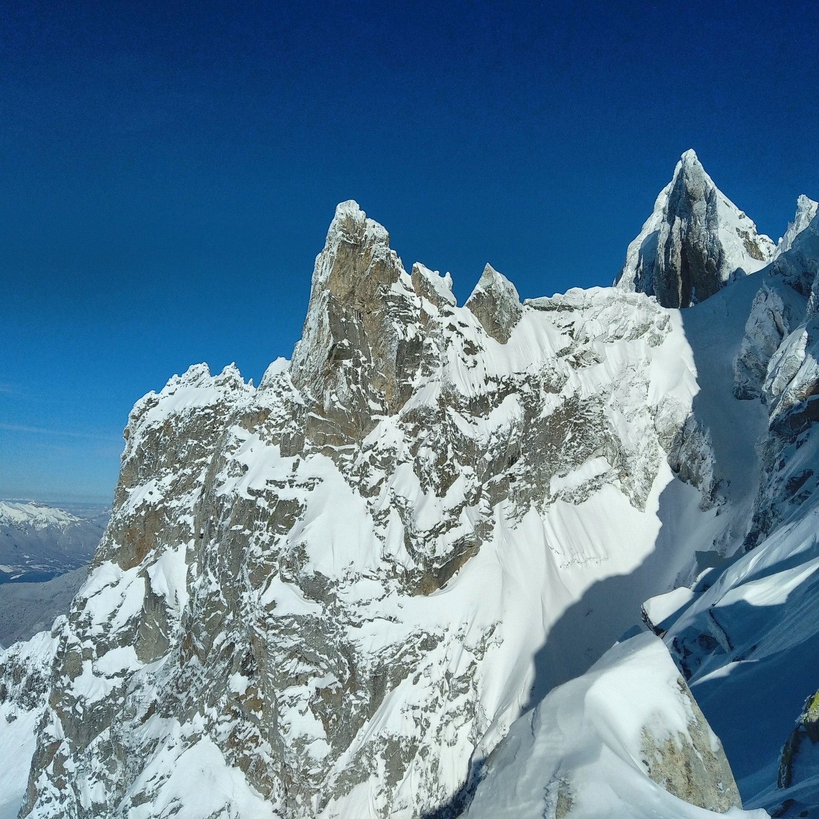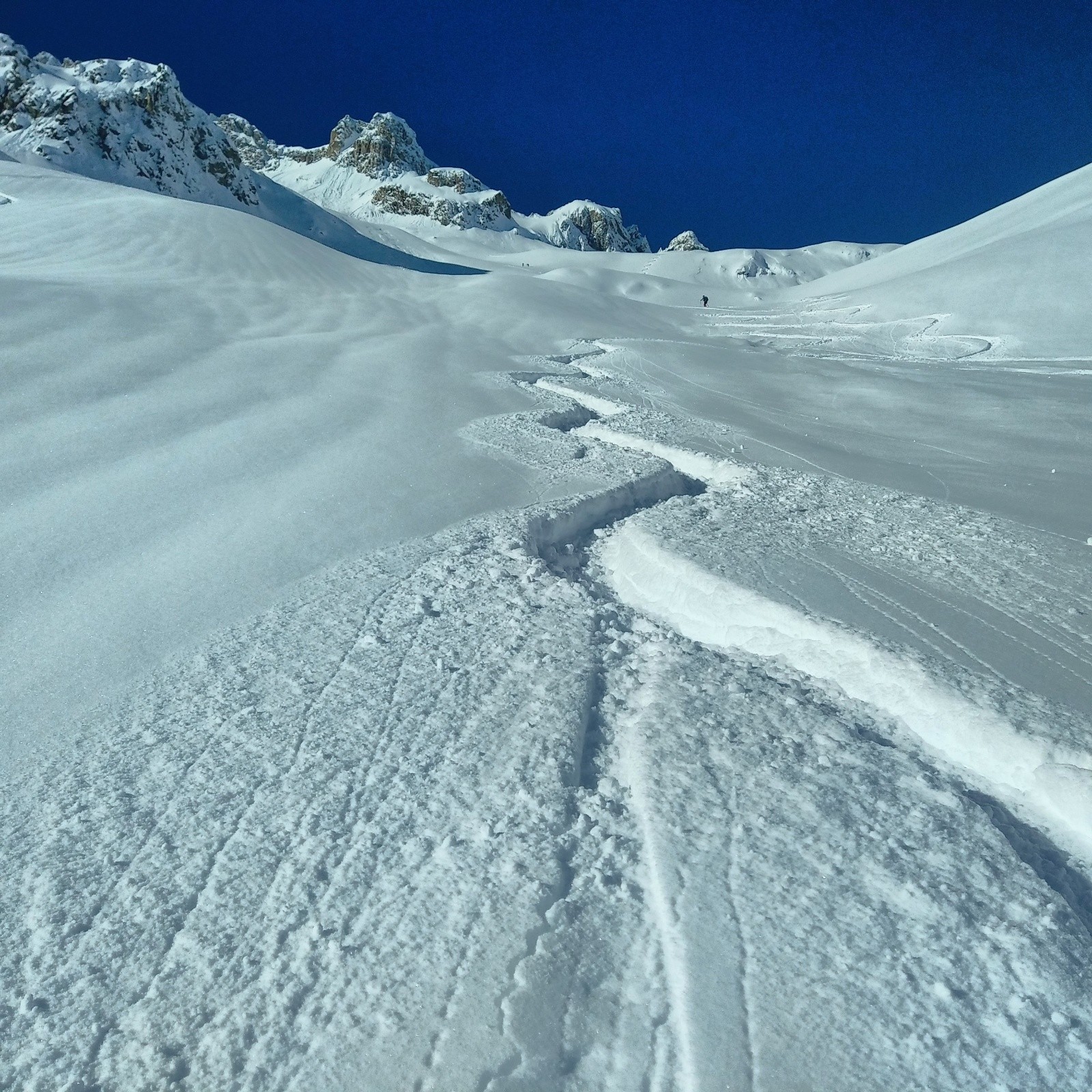 J'arriverai derrière la dernière traceuse...on voit pas mal de monde derrière qui arrivent...je ne traine pas trop...et je profite des pentes vierges...mais la neige est dure a brasser...c'est physique...mais c'est bon...je repaute en bas pour revenir sur le col de la madeleine...le reste de la descente est moyenne...trop de neige et requins par endroits.