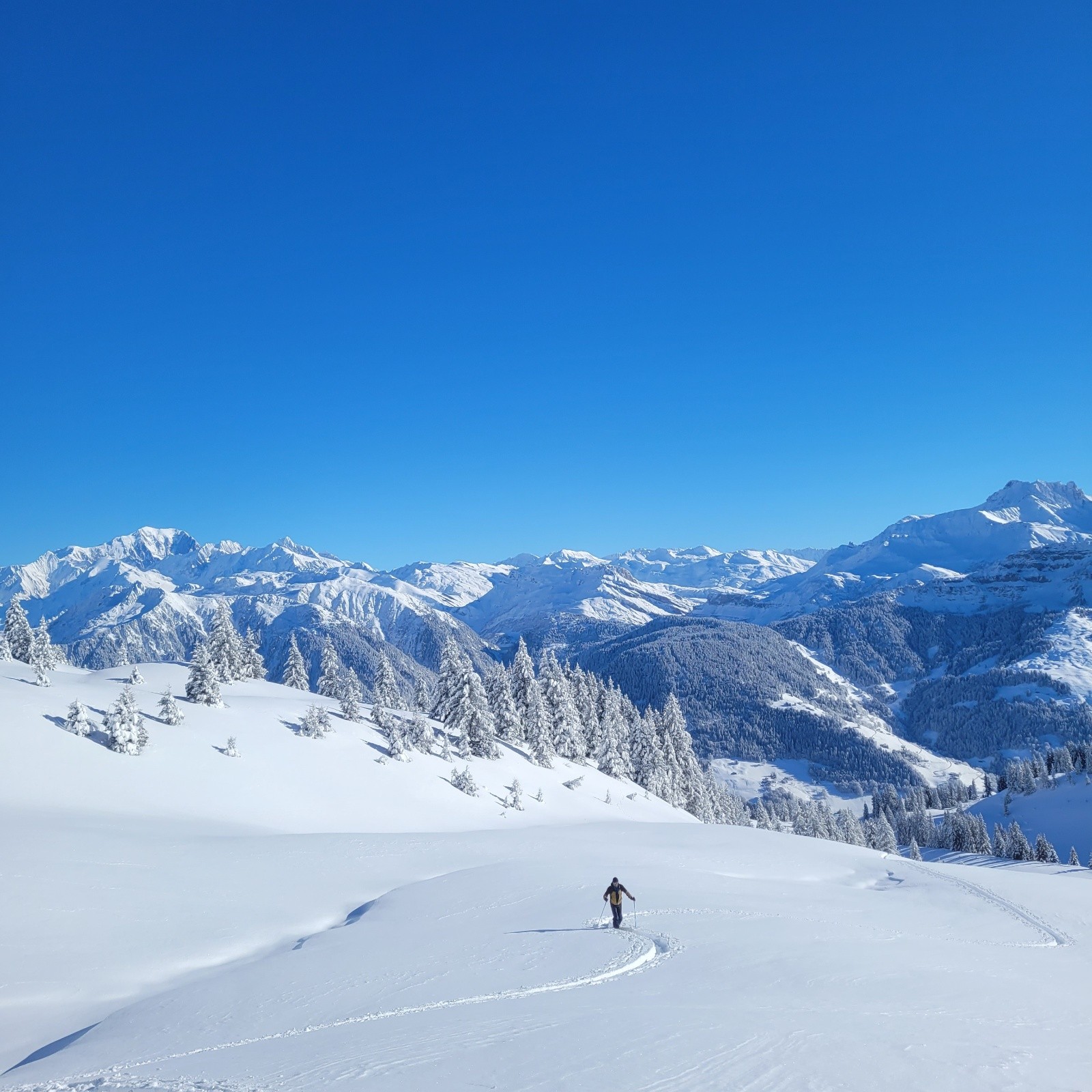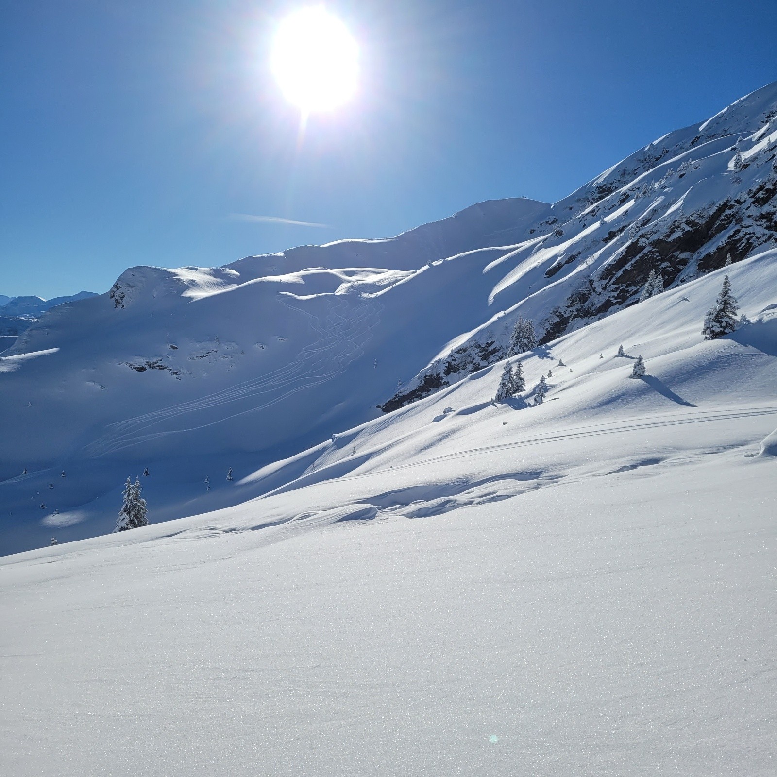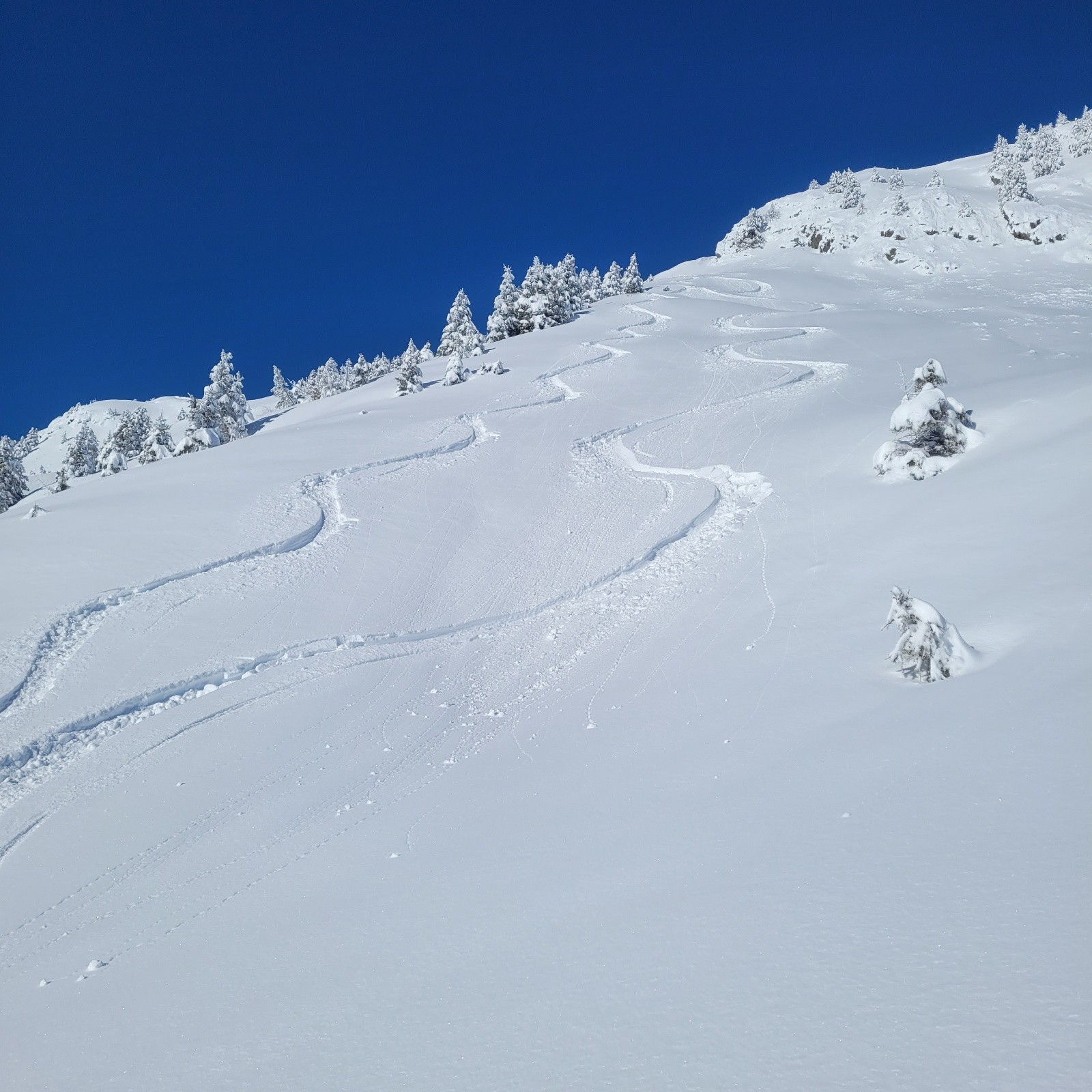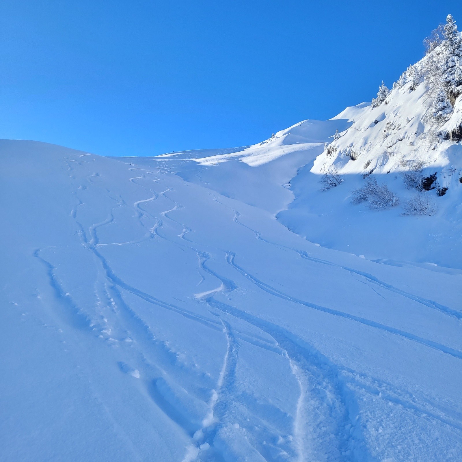 Remontée dans le chamo jusqu'à Plan Villard puis direction Côte 2100. Une première descente jusqu'au Lac du Corbeau le temps que quelqu'un fasse la trace de Roche Plane. Redescente au Lac encore une fois et remontée jusqu'à Roche Plane. Je suis descendu sur le Lac du Corbeau encore par la face Est de Roche Plane. Une remontée au Col de Roche Plane pour profiter de la poudre encore légère à l'ombre de la Légète et enfin remontée à Côte 2000 et redescente par tant pire malgrés le soleil sur le Plenay.