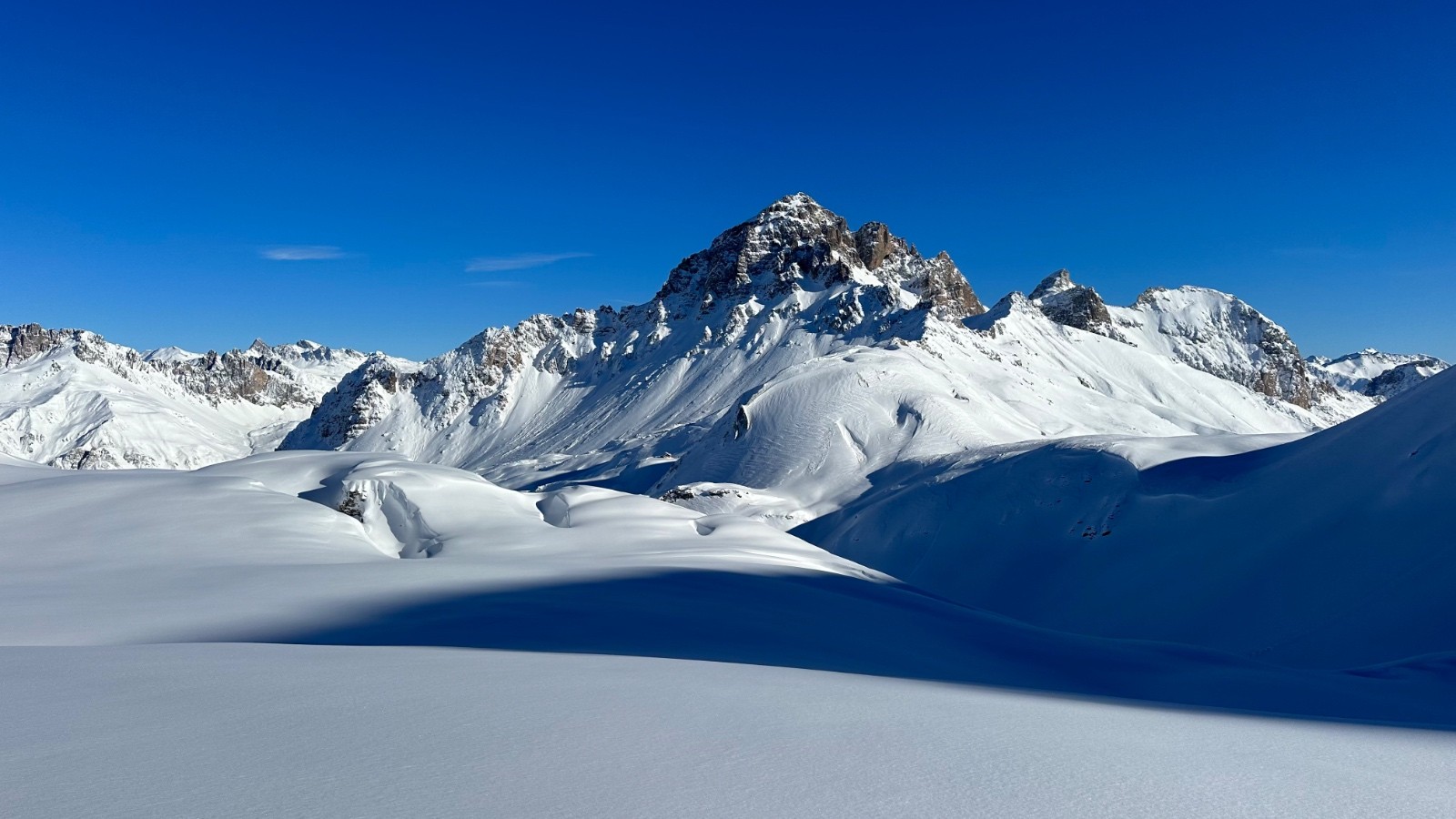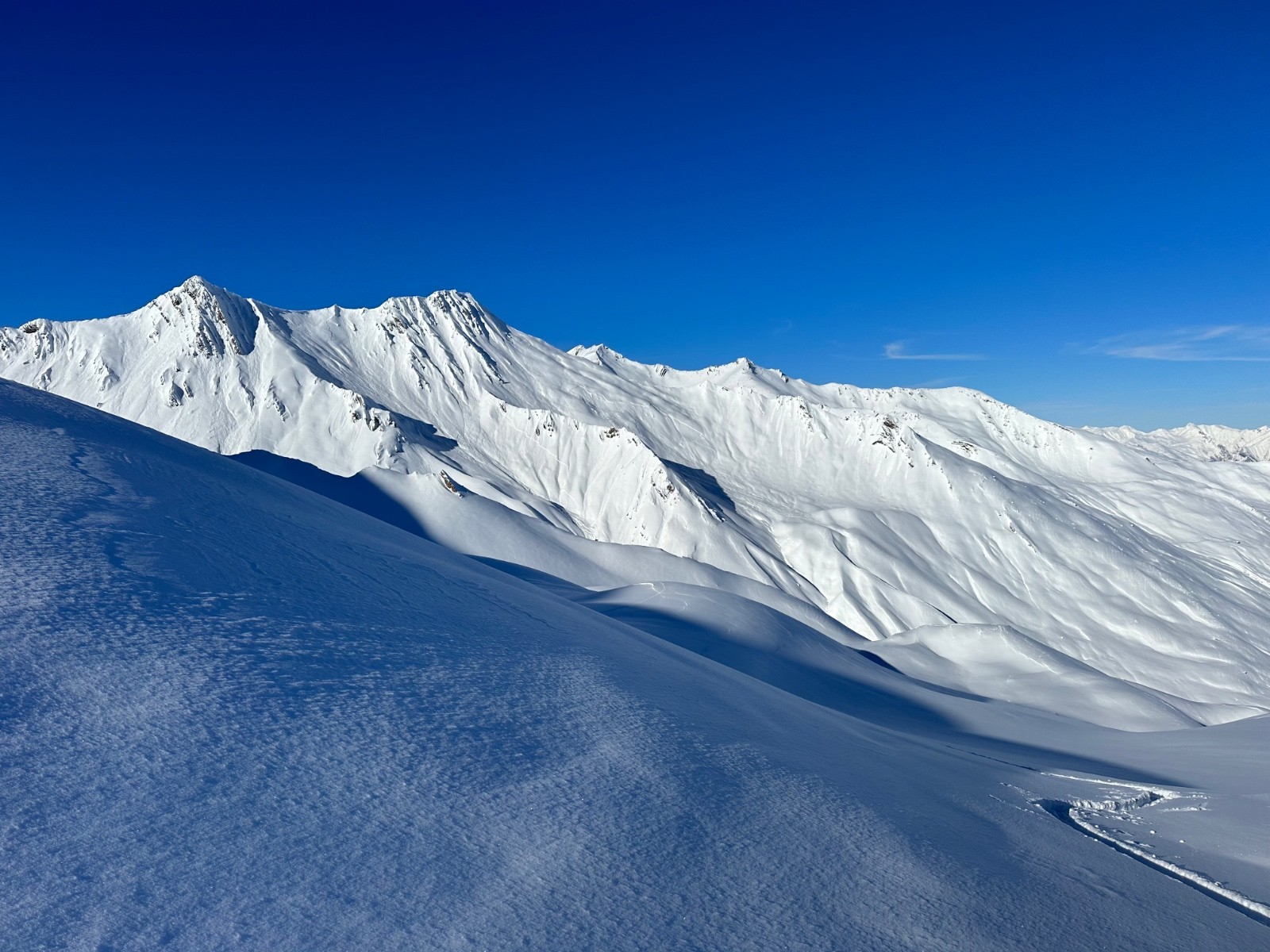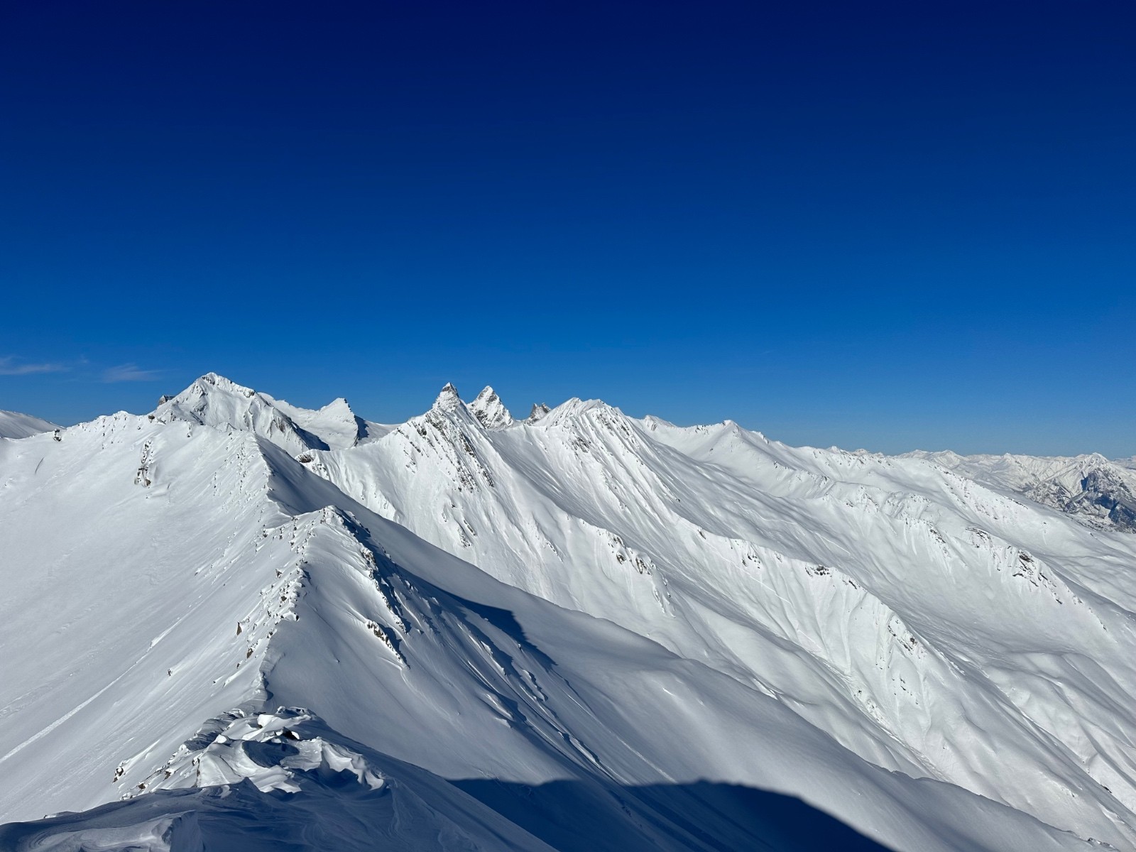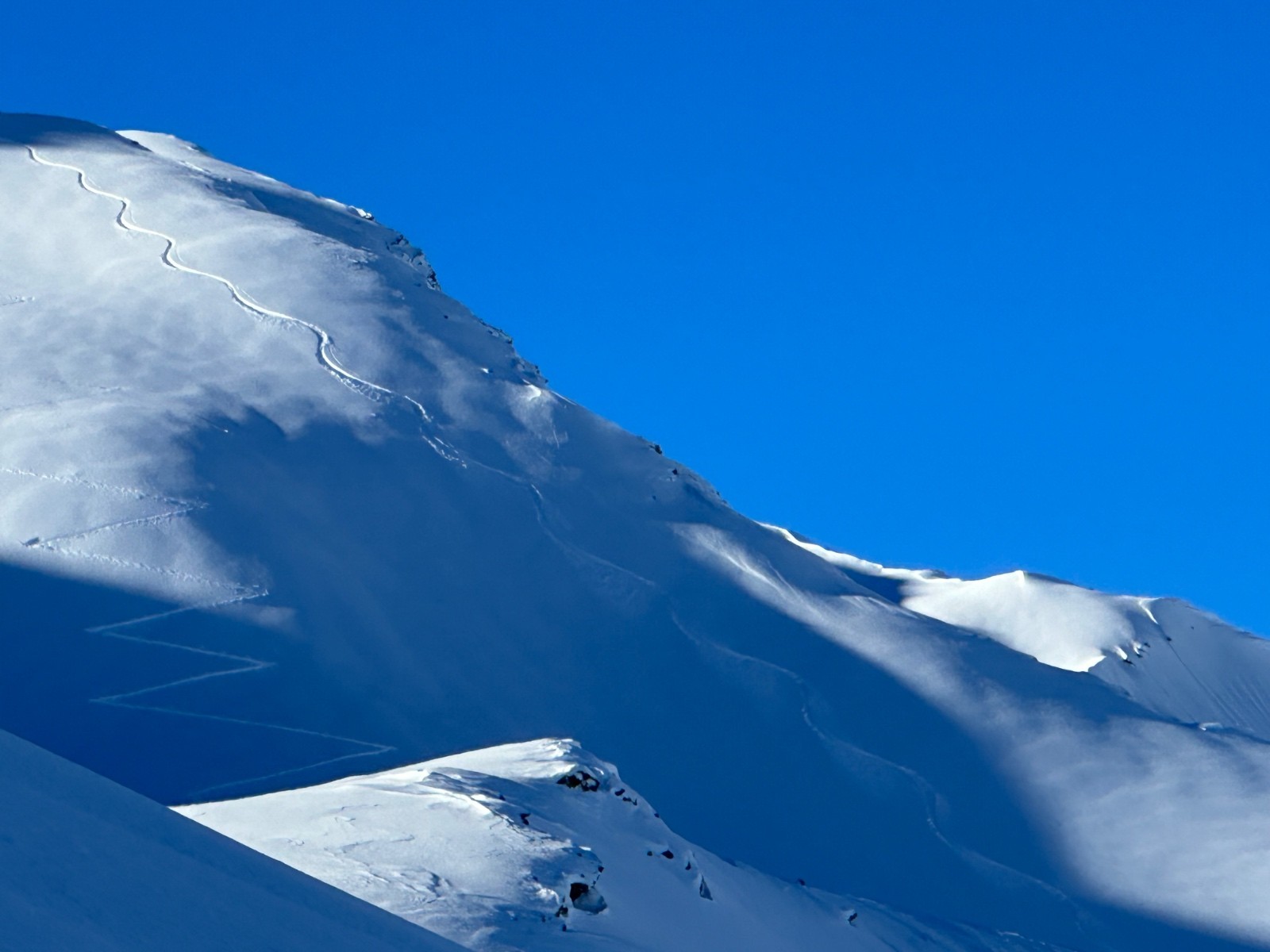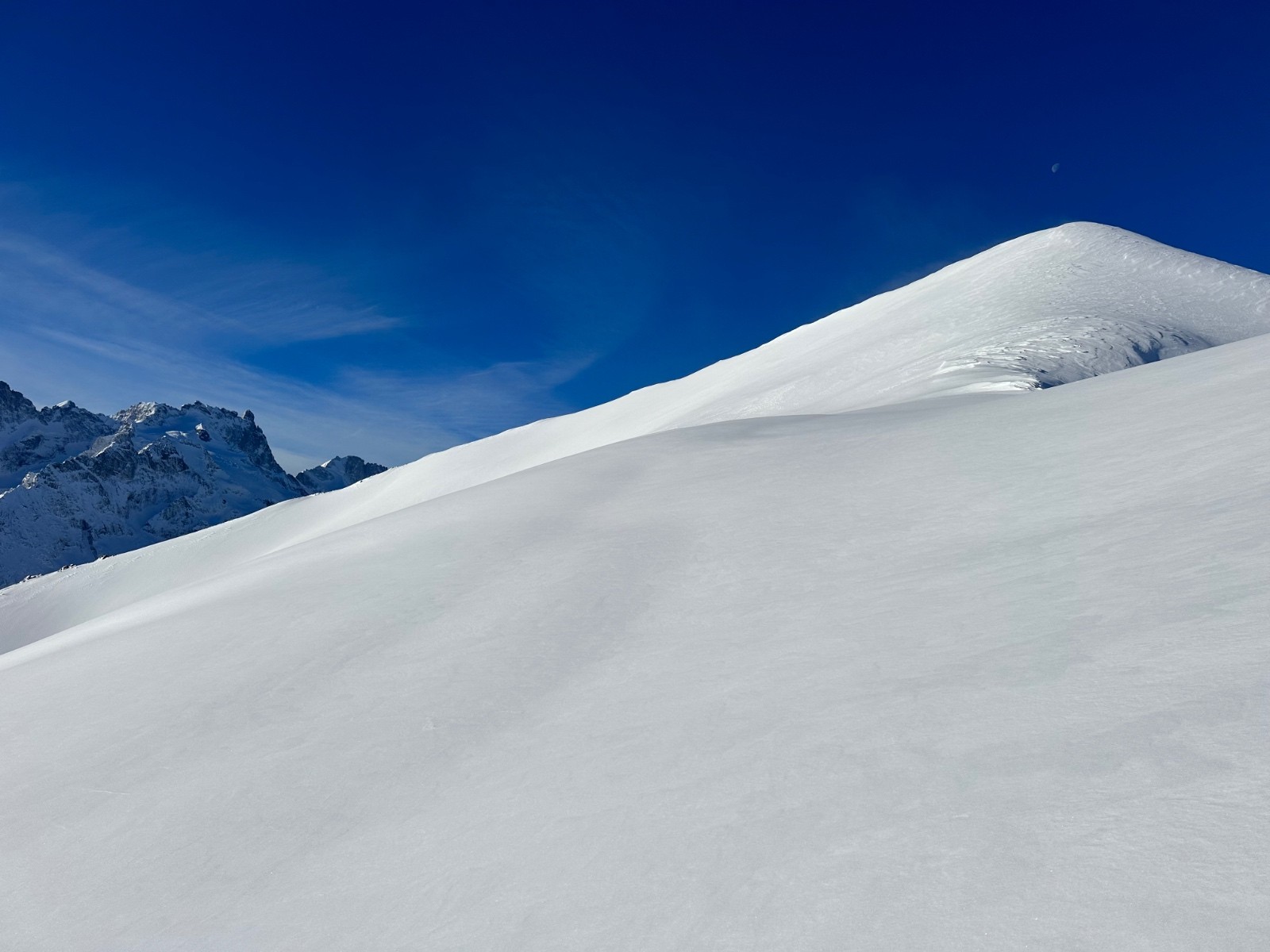 Itinéraire suivi : sommet 2x depuis le bas, dont la trace seul au monde au petit matin, puis la pente finale une 3eme fois, et bascule au N, seul à nouveau. Bcp bcp de monde entre les 2.