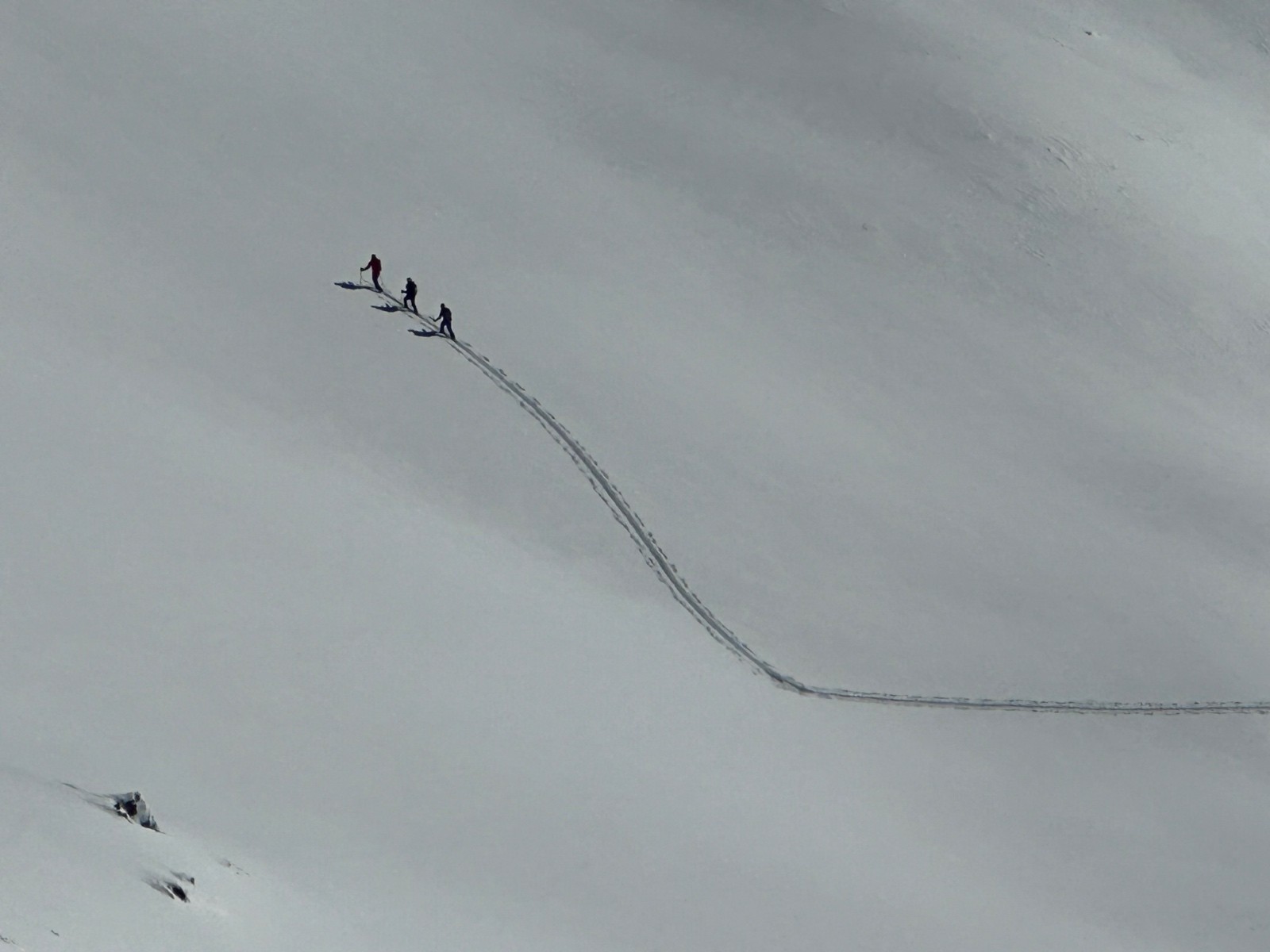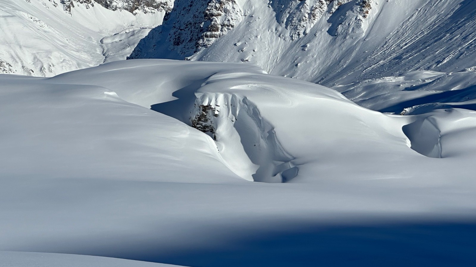 Activité avalancheuse : départ au loin en E - SE. Plutôt large, mais pas trop de volume.
