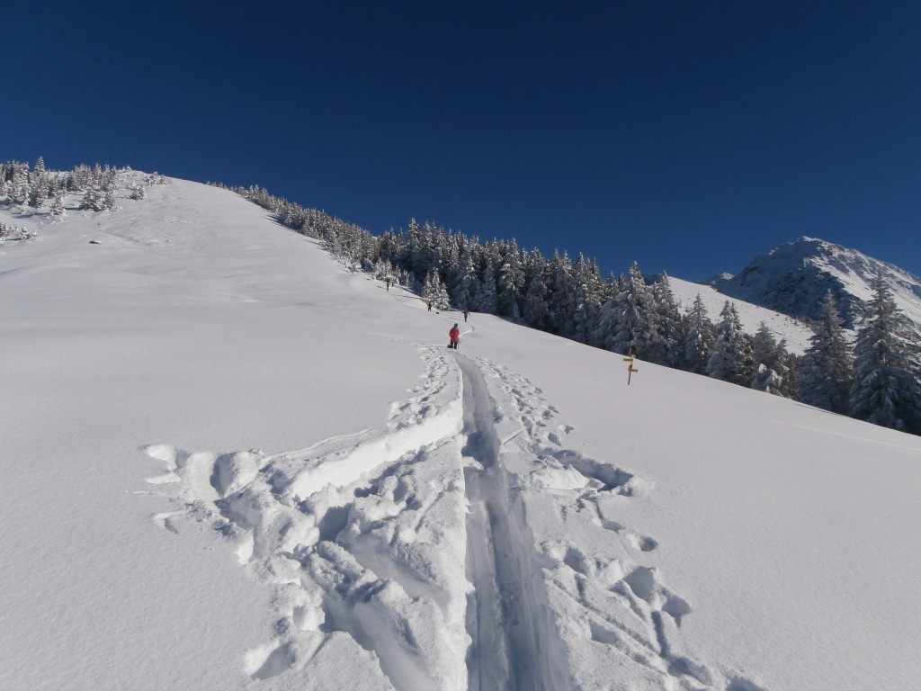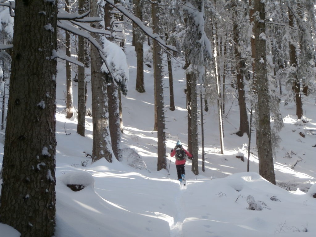 Conditions pour le ski : Poudreuse pas toujours bien glissante. Descente sur la route à partir de 1500 m