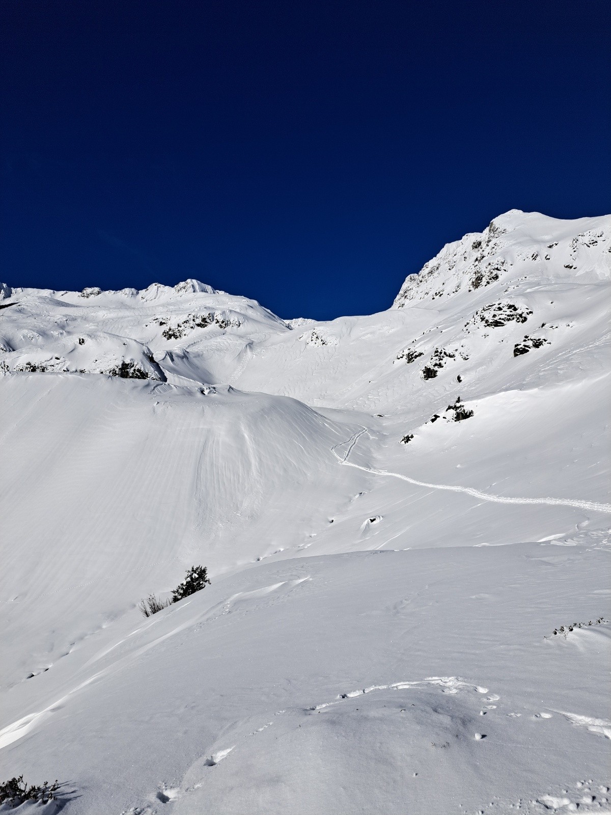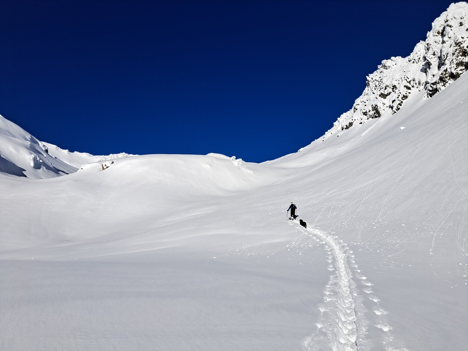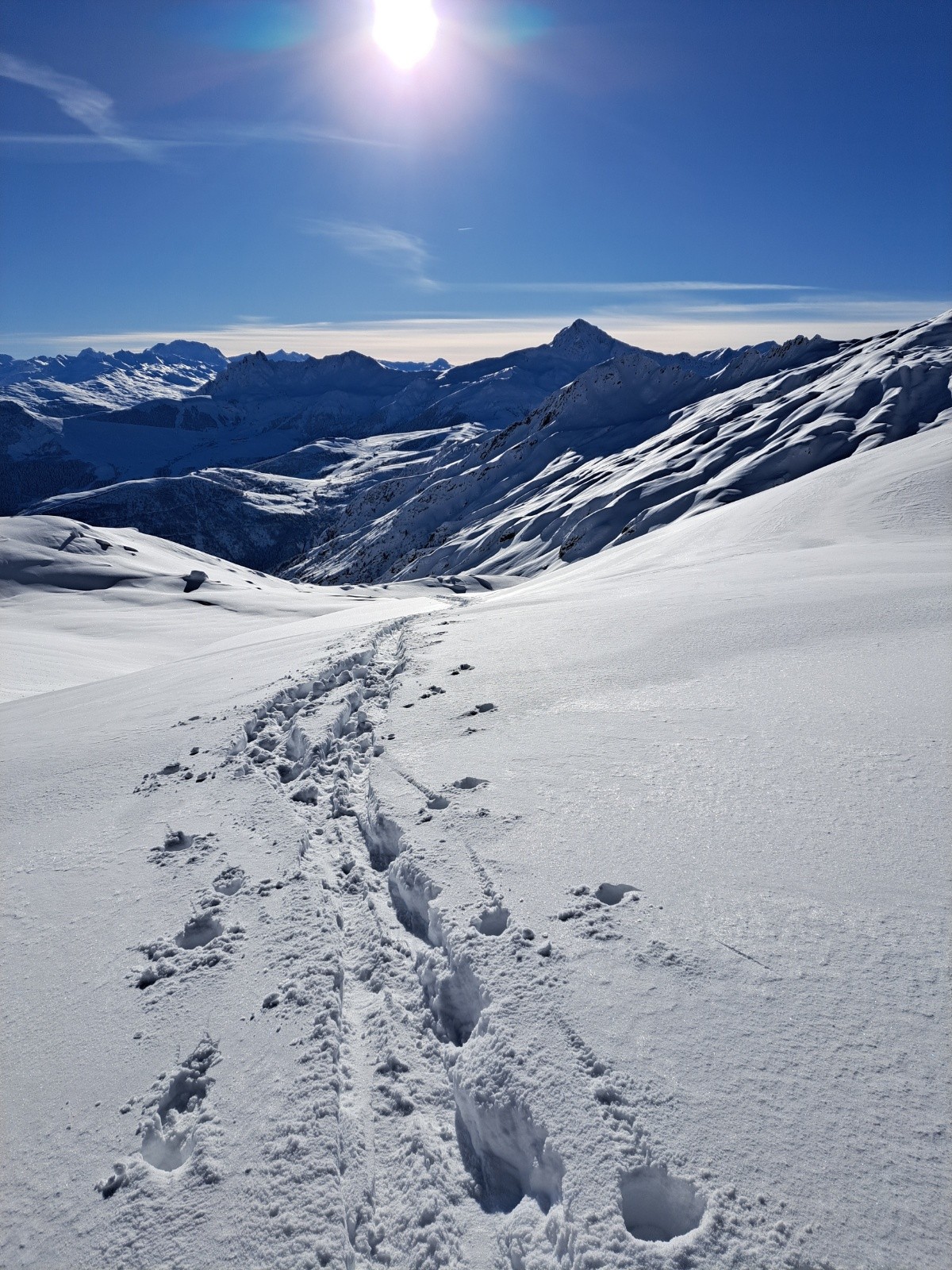 Météo/températures :-11°au départ et -8° au retour. Grand bleu et léger vent au sommet