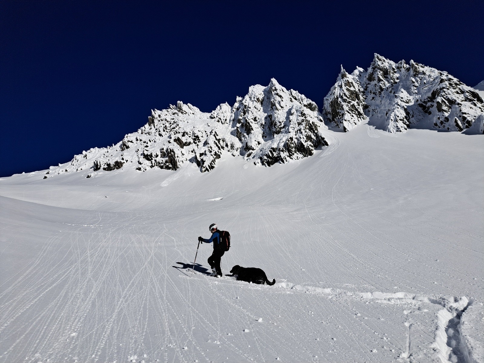Conditions pour le ski : 40 à 50 cm, cailloux sur le bas