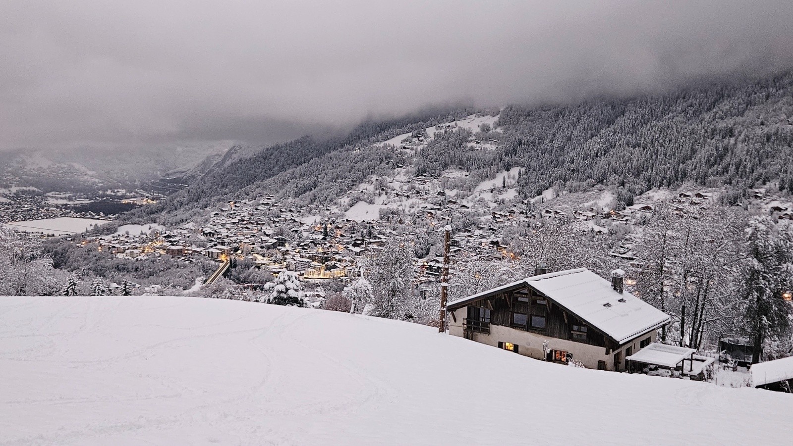Vue sur le Val Mont joie et Saint Gervais dans la descente juste avant la nuit