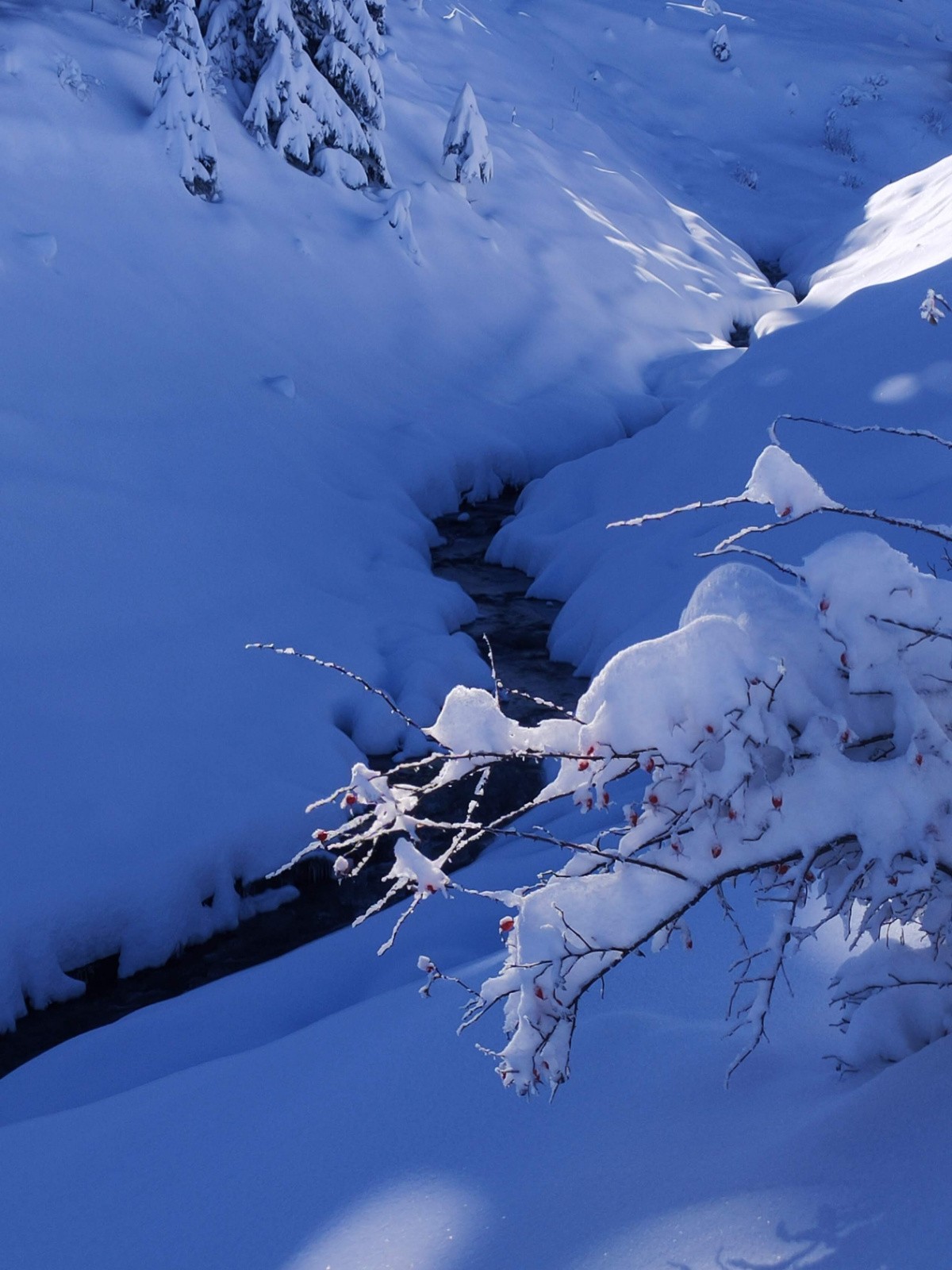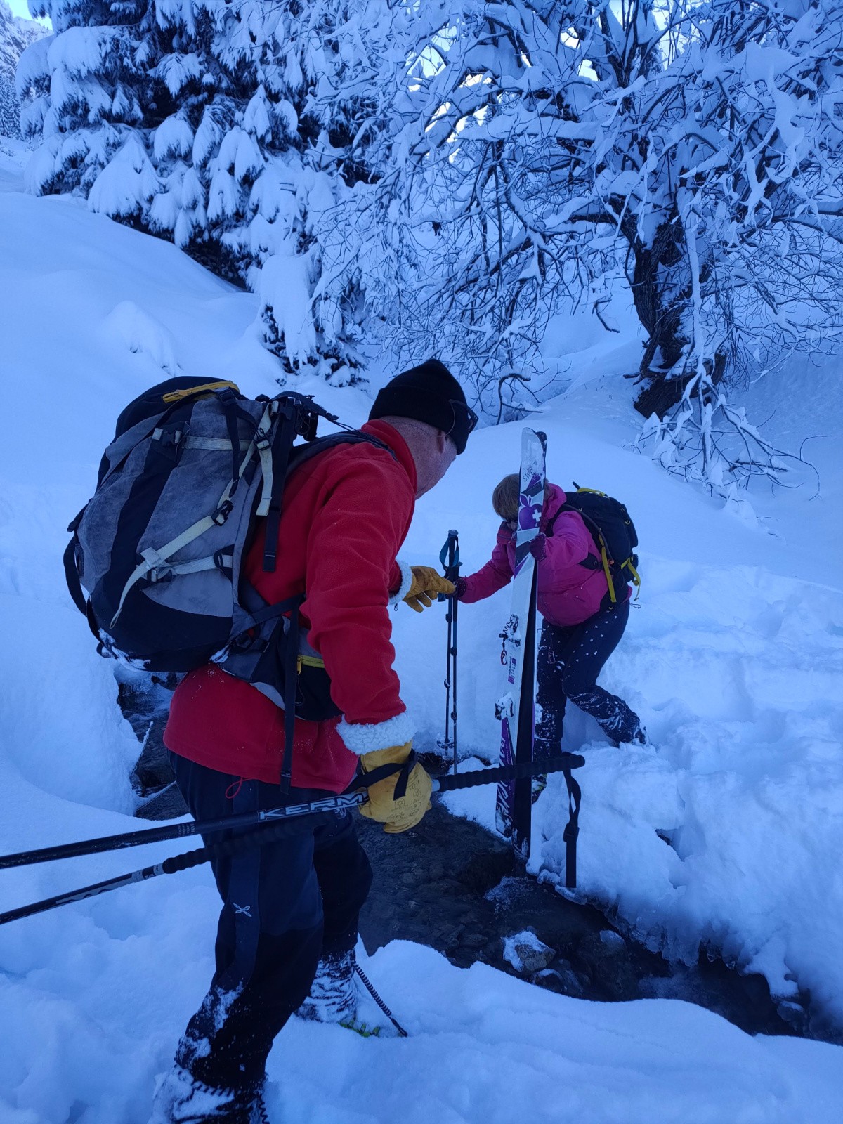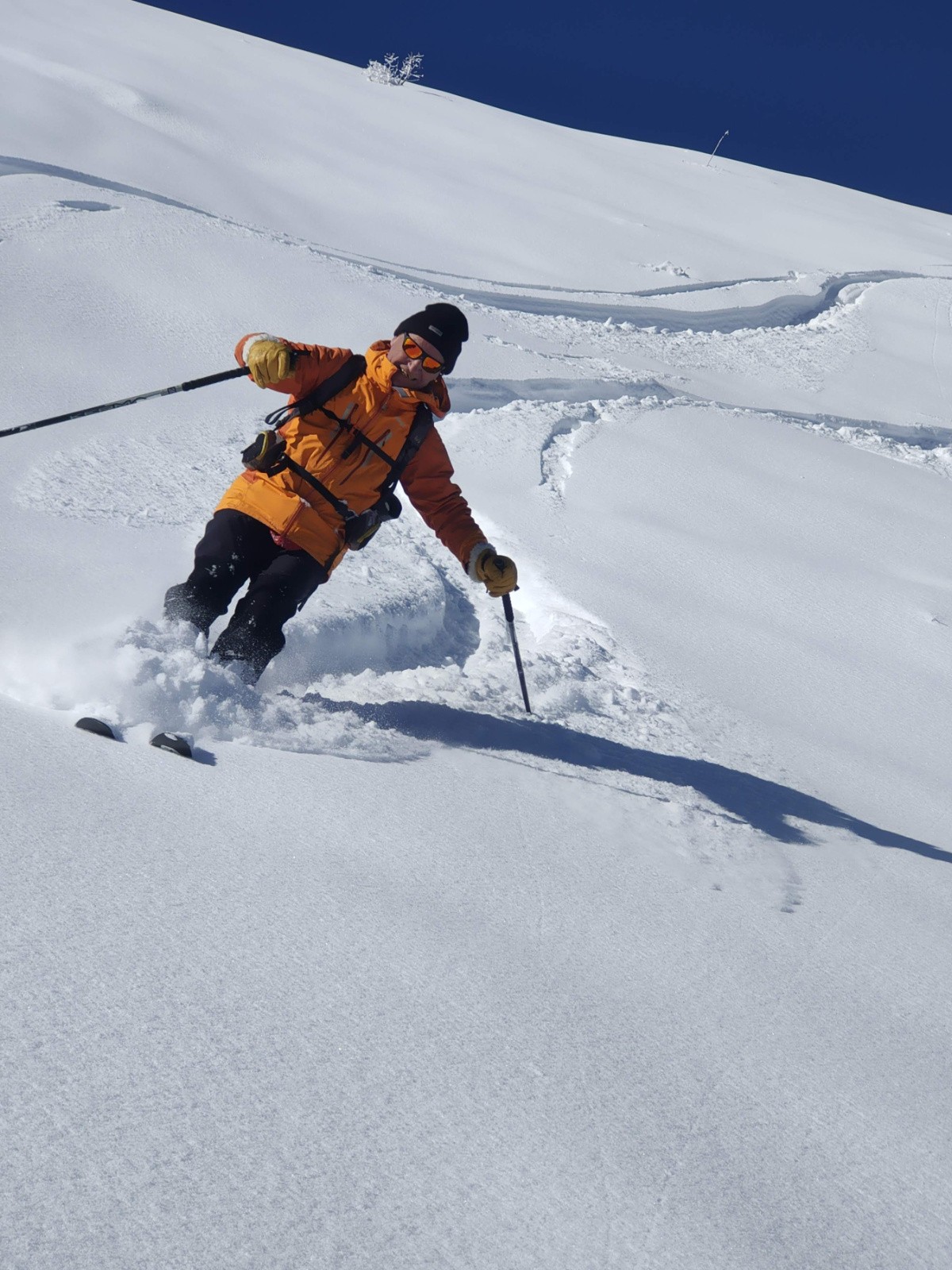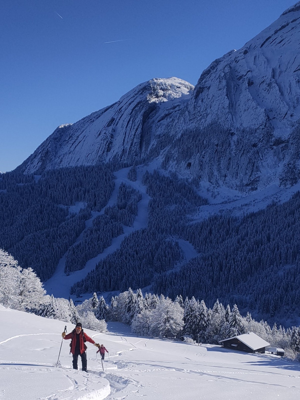 Conditions pour le ski : ben oui , 50 cm de poudre vers 1500m , une tombée généreuse sans le moindre transport du vilain vent . Nous avons joué et tricoté avec la pente, celle qui permet de skier sans pousser sur les bâtons.