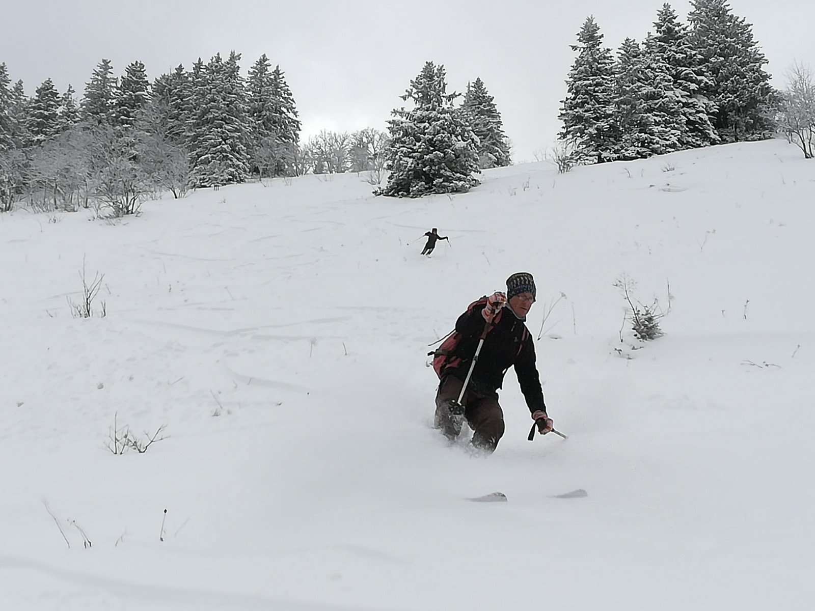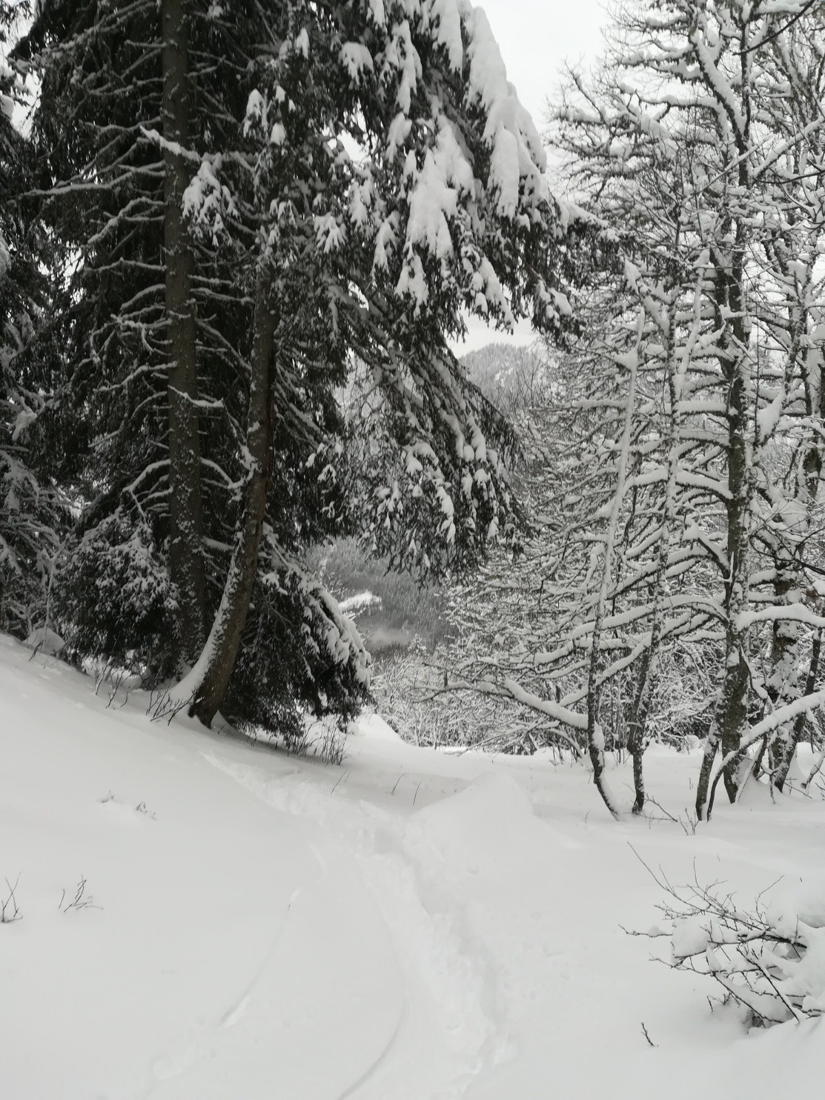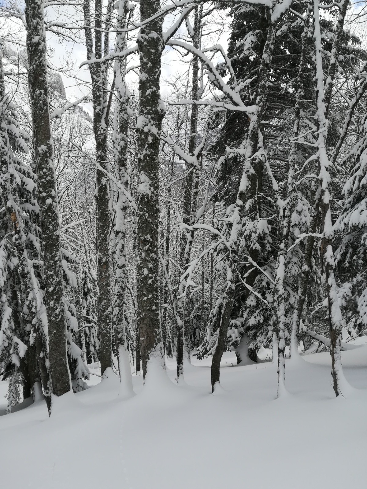 Descente E Scia - Croisement Bellefont en poudre 25-30 parfois plus dans la forêt sur fond dur. Neige posée sans vent dans la forêt. 5*