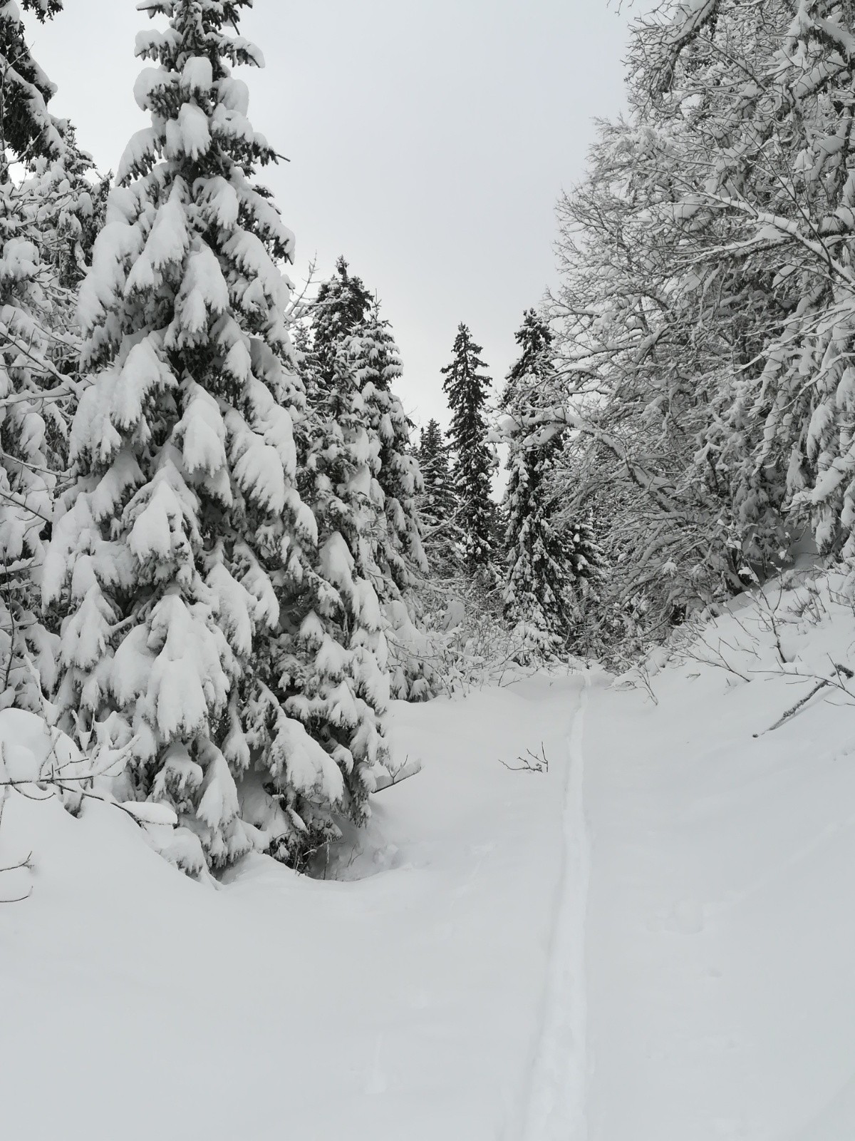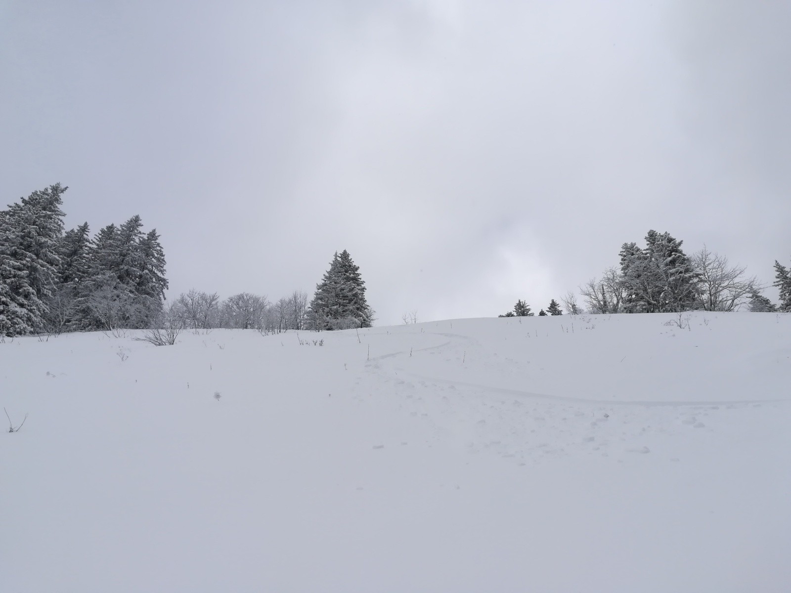 Blocage sur la route pour cause de sécurisation, j'arrive un peu tardivement au parking. Pour autant, je ne vois pas de trace. Finalement, il y en aura une qui vient du téléski.