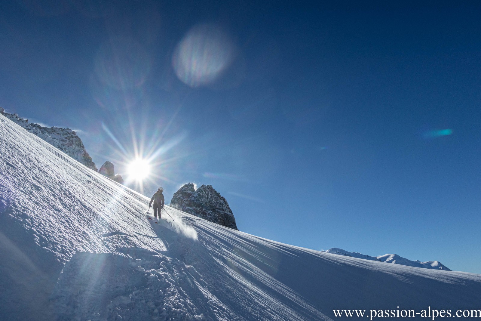 Pas dégoutés pour autant, nous avons remis les peaux pour une autre belle descente coté glacier des Rognons, faut pas gâcher !!