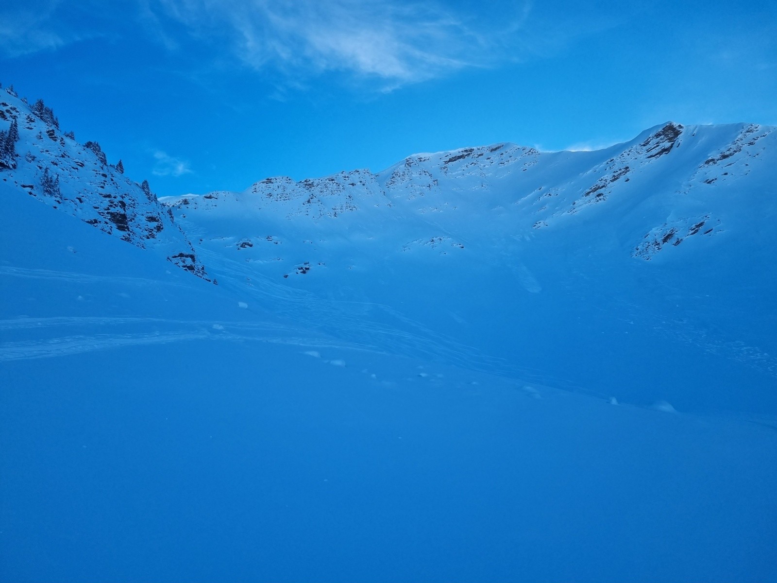 Conditions nivo et activité avalancheuse : RAS. Quelques coulées anciennes probablement dues à la pluie des jours précédents mais gênent pas l'itinéraire. Coulée dans le couloir de la Chenau qui n'avait pas l'air très praticable (en plus des cailloux apparents). Le couloir NO a été skié.