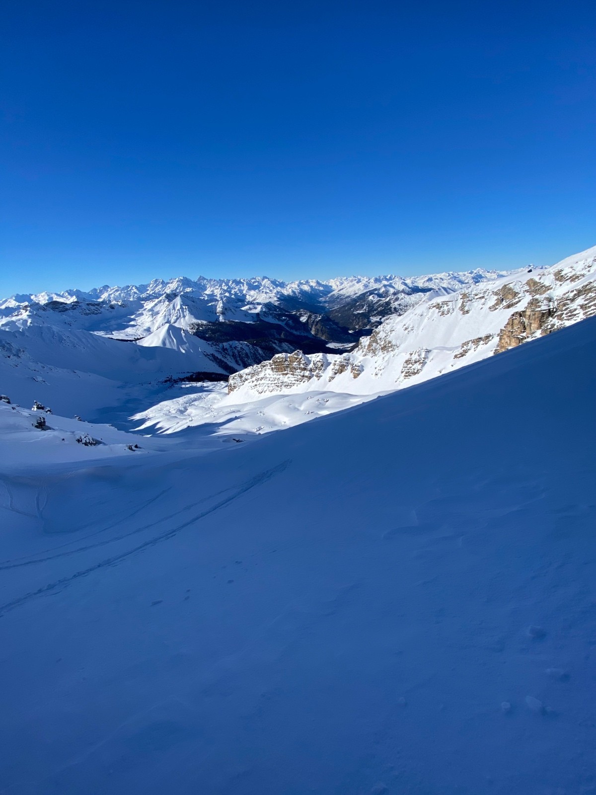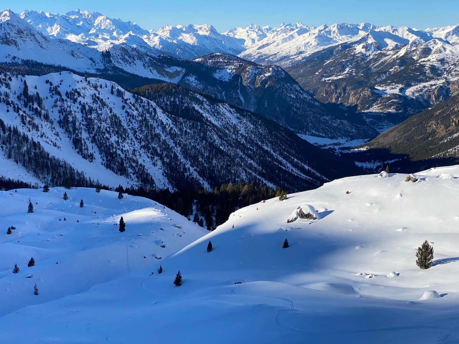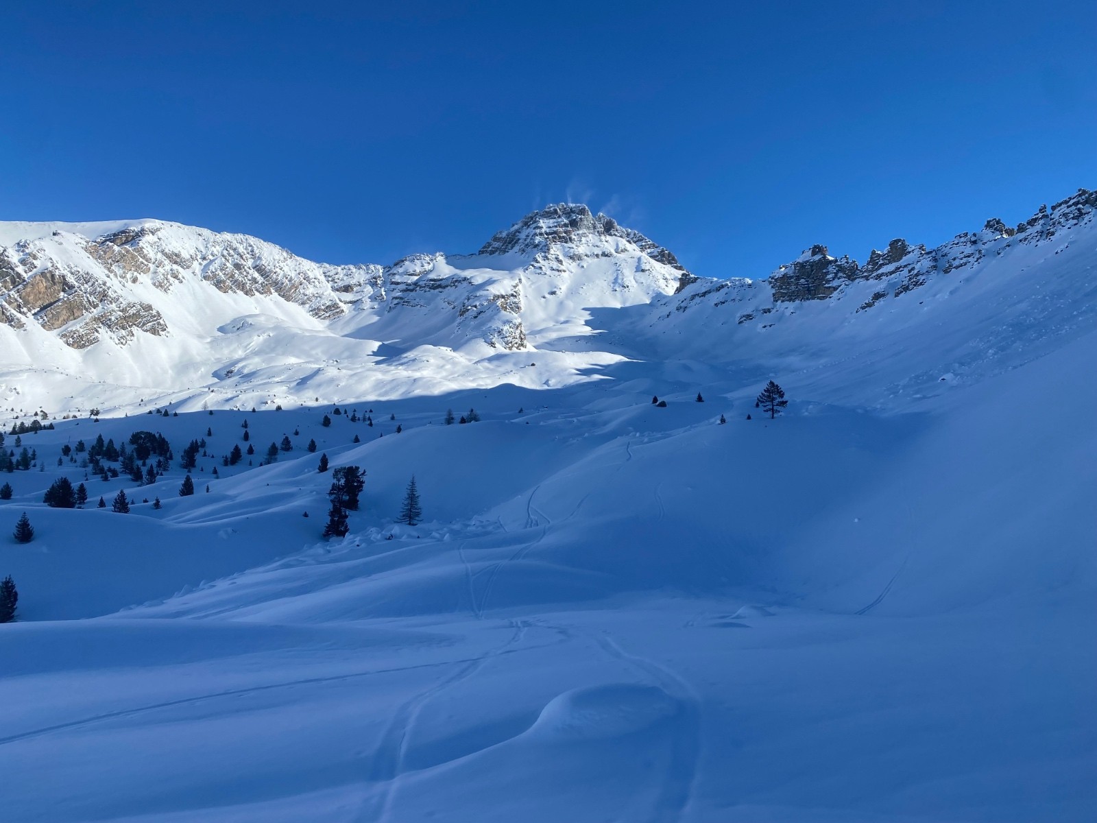 Itinéraire suivi : départ du Laus en suivant l’itinéraire pour Côte Belle, puis bifurcation vers le Col des Portes sur le replat. Montée par le vallon sous le Col en restant un peu à droite dans l’ombre pour avoir une neige fraîche et froide.