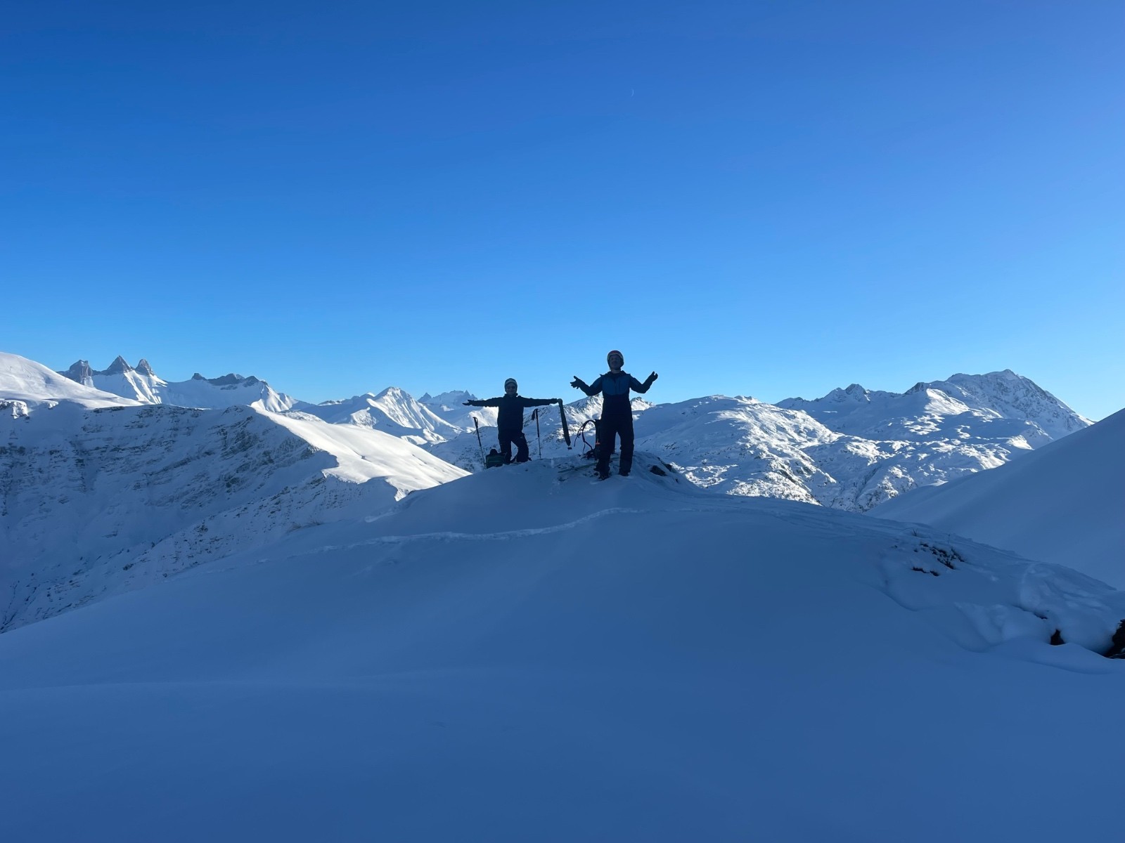 Conditions nivo et activité avalancheuse : Neige globalement poudreuse et froide. La partie sommitale montre quelques accumulations et plaquées/cartonnées par le vent.