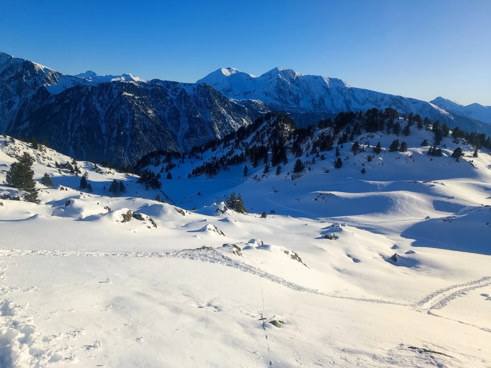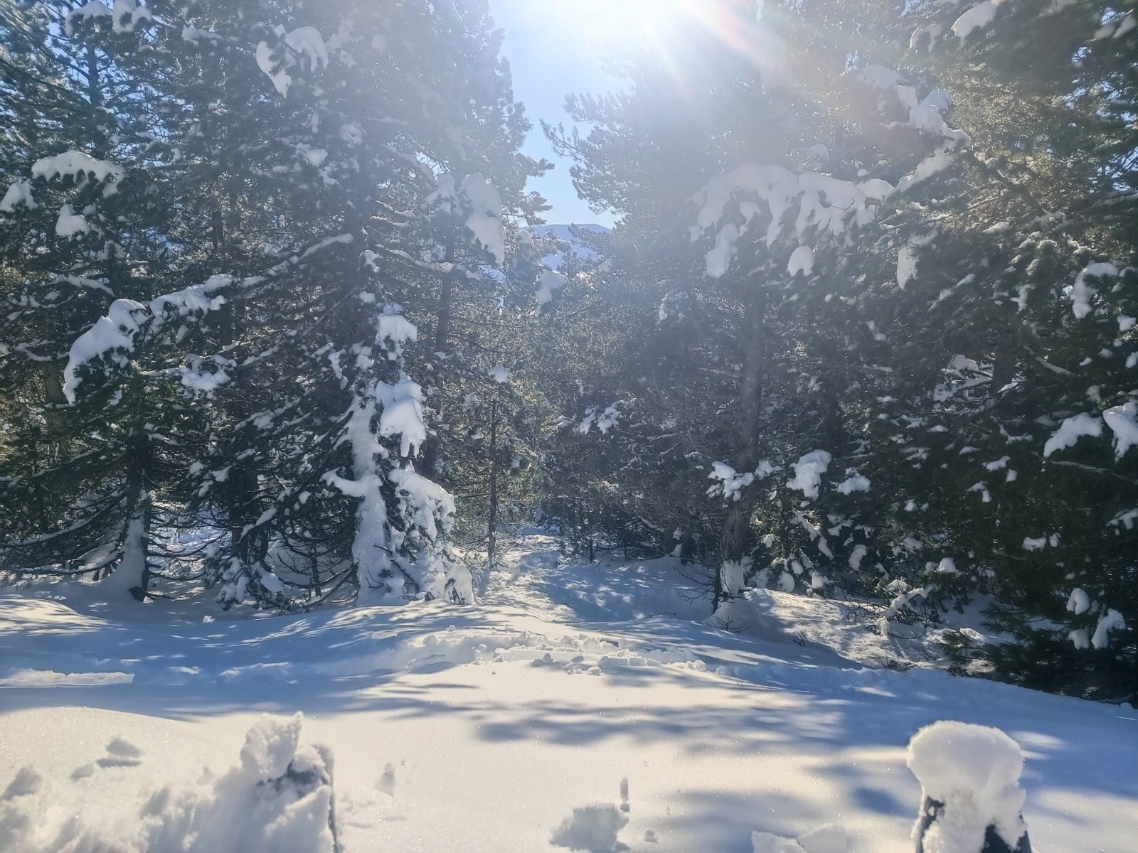 Conditions pour le ski : çà botte à morte dans la forêt jusqu'au col de l'Infernet, après çà zip un peu. Descente moyenne, difficile de juger où sont les plaques de glaces.