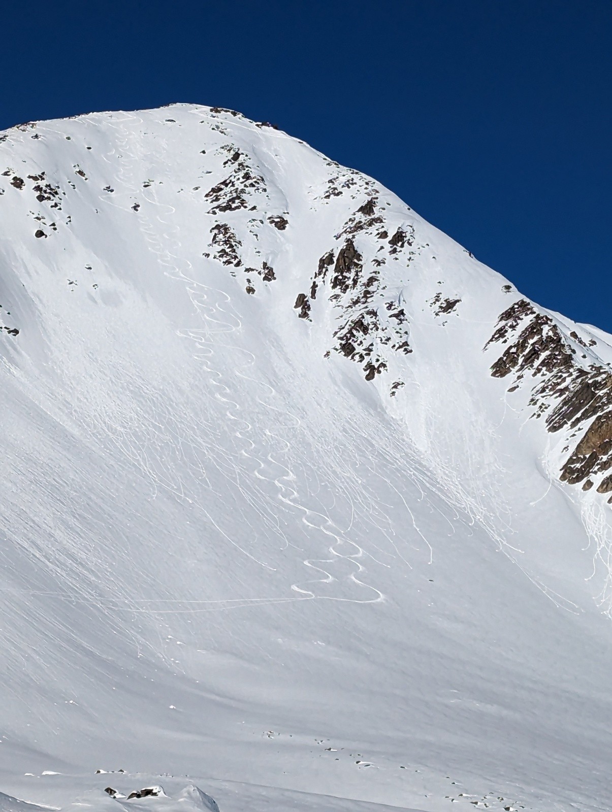 Itinéraire suivi : combe S en montée puis première descente jusqu'à 2670 par le même itinéraire puis remontée à la pointe puis descente en S dans la face (coté 4.1 dans le topo Cerces volopress)