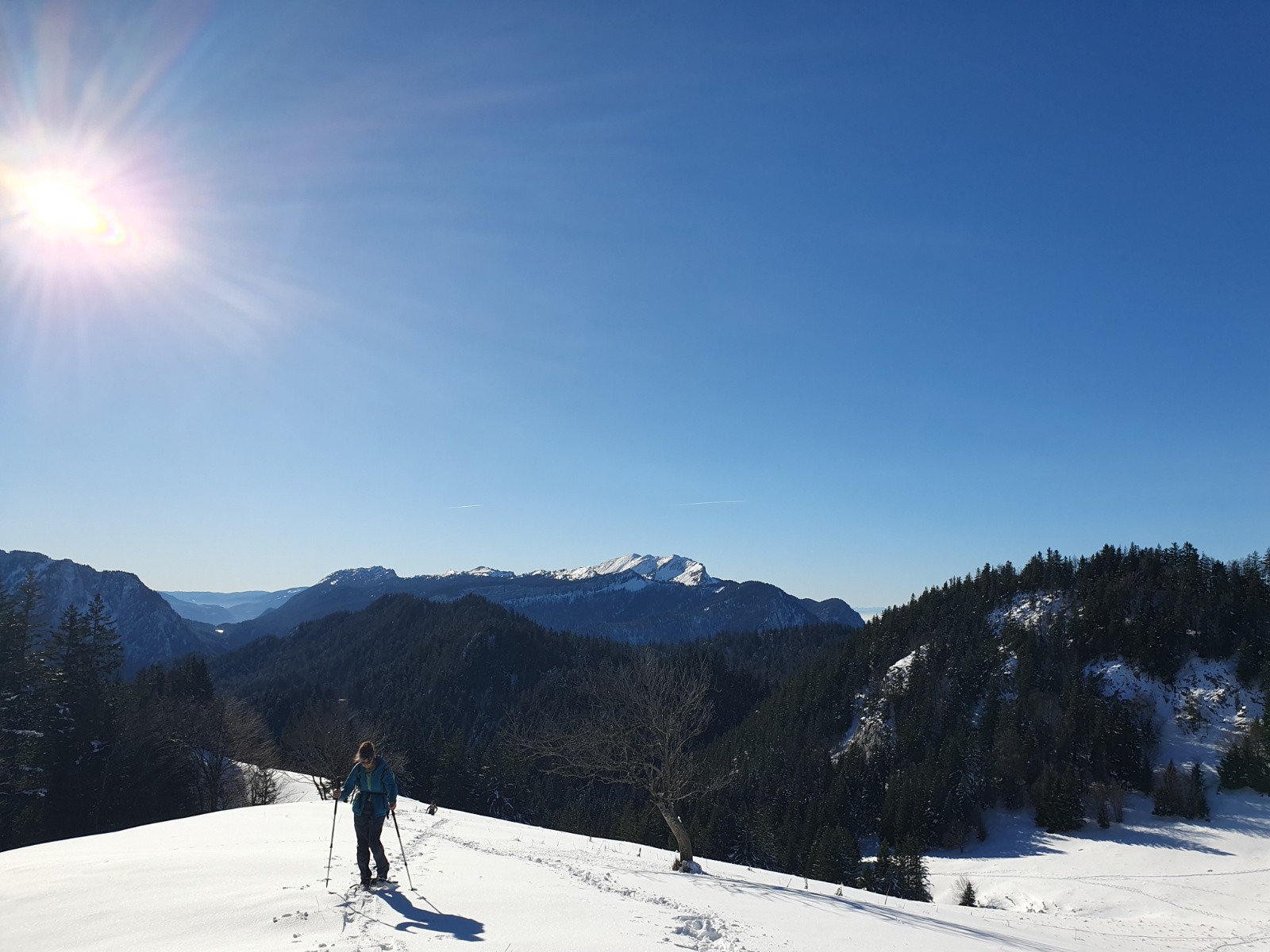 Envie de ski serein, compatible avec une racketteuse, pas trop grave en points mazout. Ma sortie de vendredi aux Vans m'a indiqué que les récentes chutes de neige ne garantissaient pas de gavage. Donc Chartreuse (on est joueurs aussi). Et Taramont ne cessant de vanter les charmes de ces cols, prairies, forêts et points de vue… direction La Ruchère. Evidemment, elle ne va pas là bas le dimanche ni quand il fait beau. Donc l'ambiance n'est pas aussi feutrée que dans ses CR mais franchement, c'est un très très beau tour…
