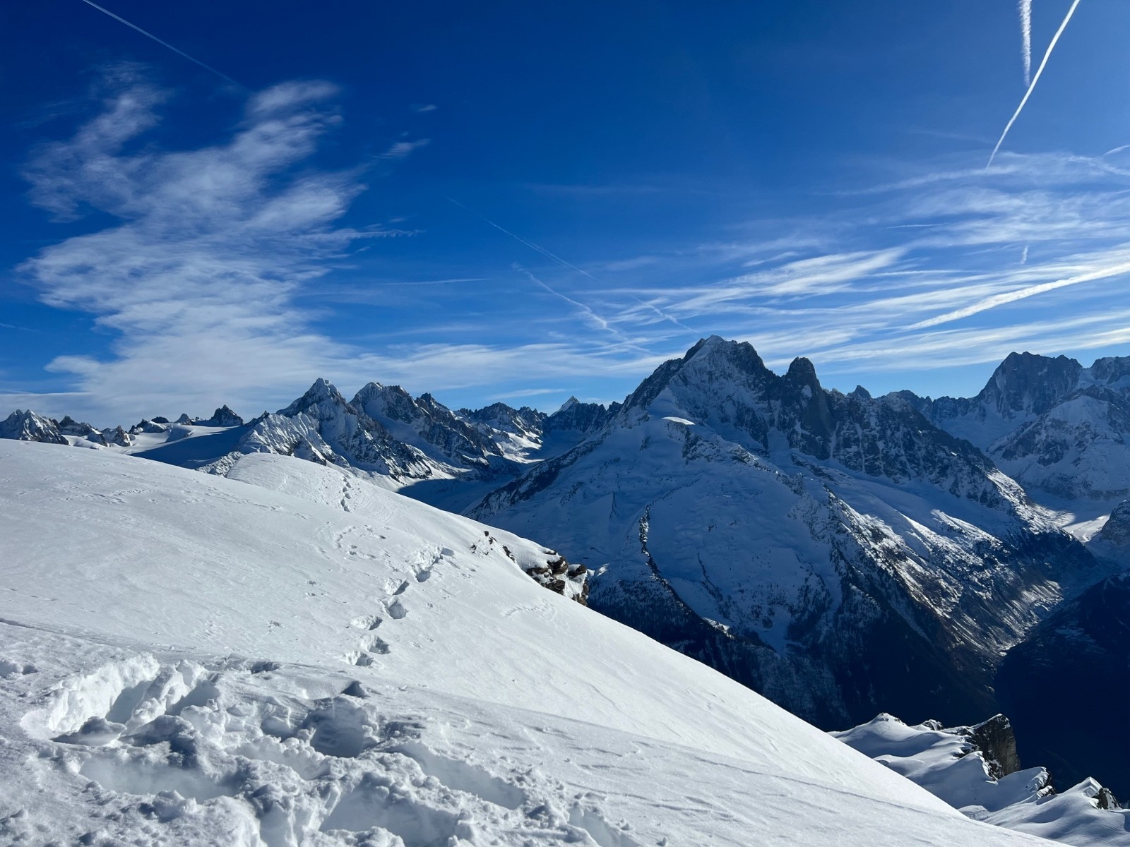 Altitude de chaussage/déchaussage : départ du sommet de l’index, retour au télécabine de la Flegere