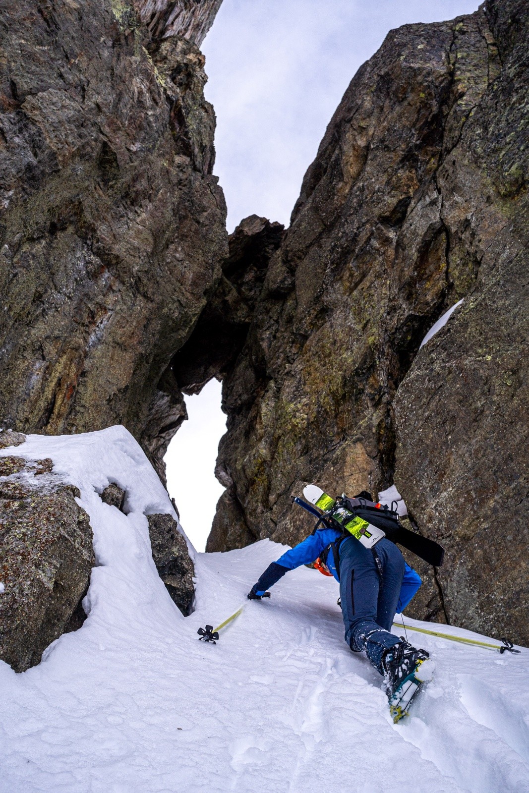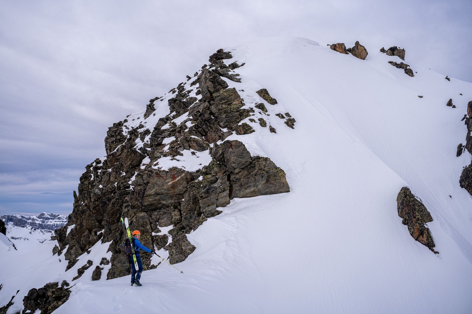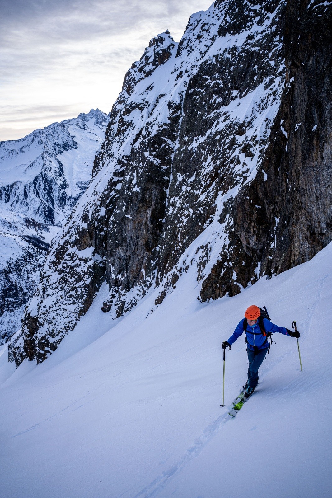 Conditions pour le ski : Regel correct. Neige dure dans les versants qui ont pris le soleil. Vieille poudre dans les versants froid abrités du vent. Couloir en belle poudre tassée, parfait pour la pente raide ! Cône en neige soufflée, cartonnée et rarement poudre, restant très agréable à skier.
