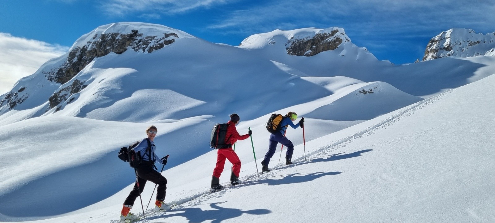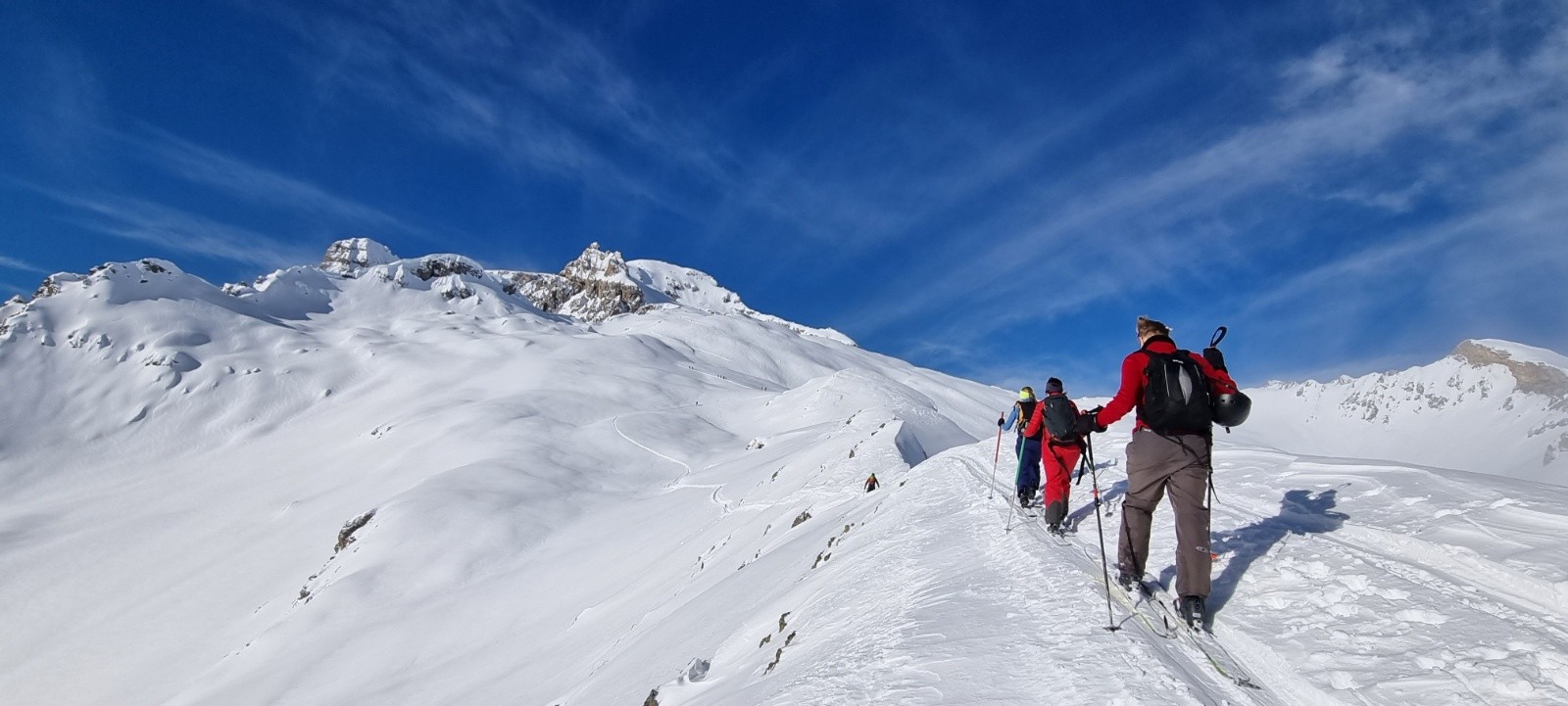 Itinéraire suivi :télésièges puis topo avec en option une petite descente en cours de montée histoire d'honorer ces belles pentes vierges qui nous faisaient de l'œil..