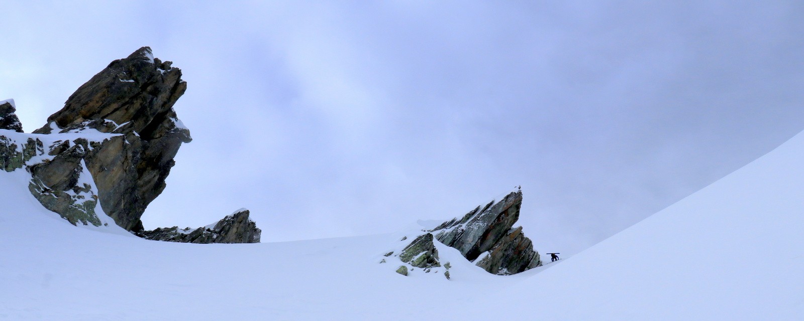Conditions nivo et activité avalancheuse : Légèrement plaqué (10 cm sous le col en face Est)