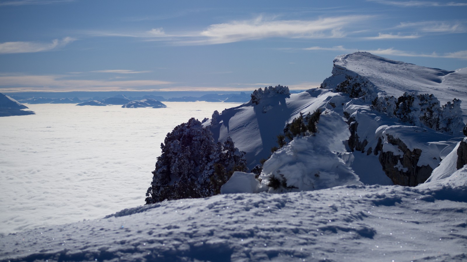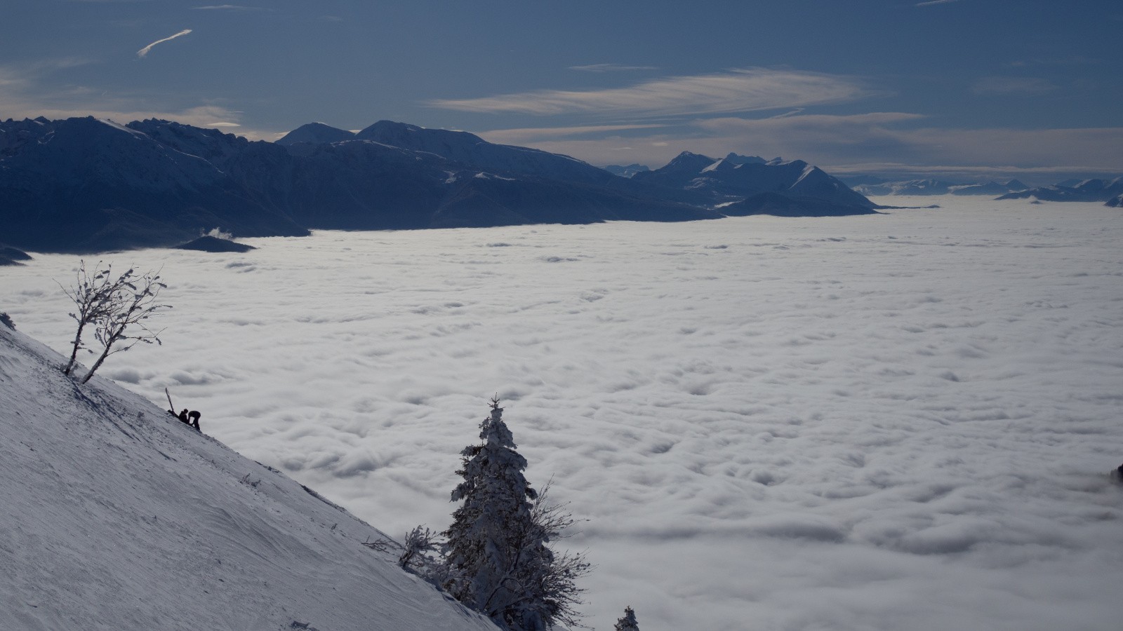 Mer de nuage annoncée pour aujourd'hui, de la neige en quantité, un pote qui cherche du boulot mais aussi et surtout à skier un peu ... On pose un RTT et hop direction la Chartreuse pour profiter tant qu'il y a de la neige !