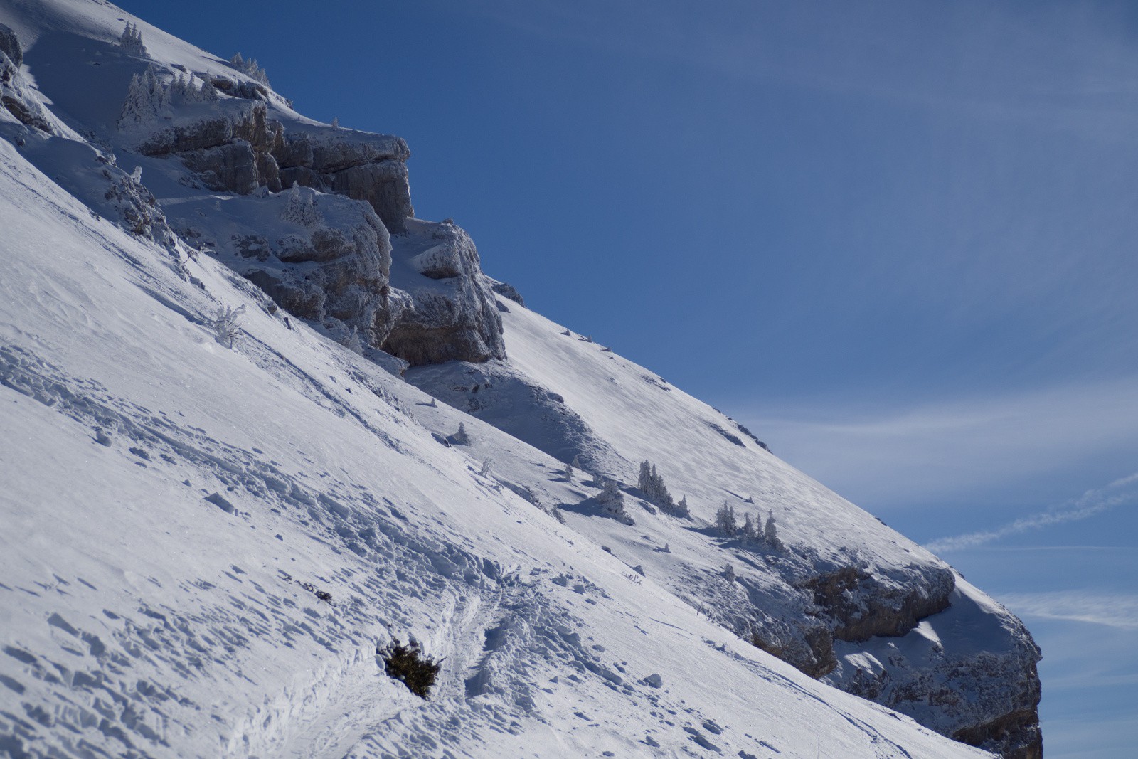 Bref une bien belle balade dont je n'avais jamais eu l'occasion/créneau de faire qui se sera laissé skier intégralement si ce n'est ces 2 petits ressauts. Cadre vraiment sympa avec les falaises du plateau de Crolles tout autour :)