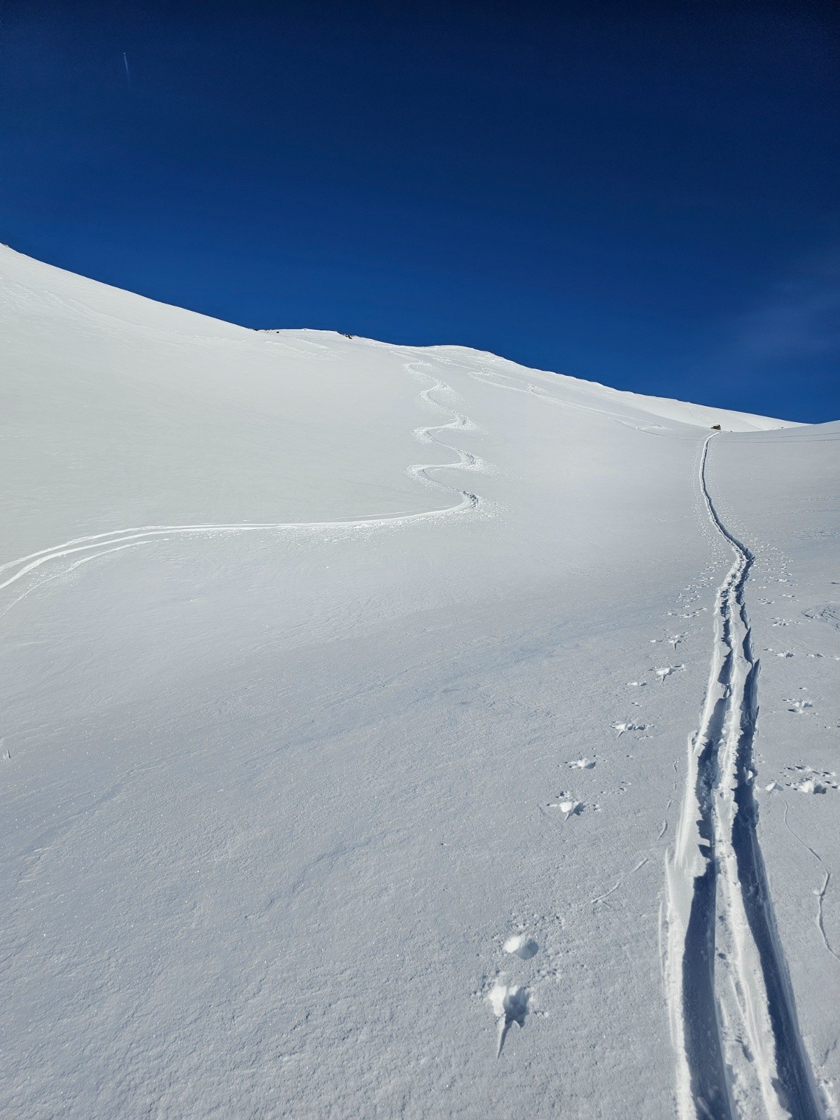 Conditions nivo et activité avalancheuse : pas de départ constatés et manteau semble stable. Dans les vans plutôt cartonnée sur 3 passages et poudre sur le reste