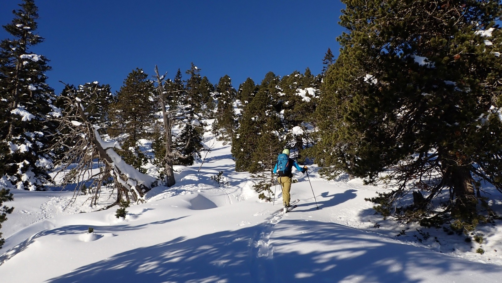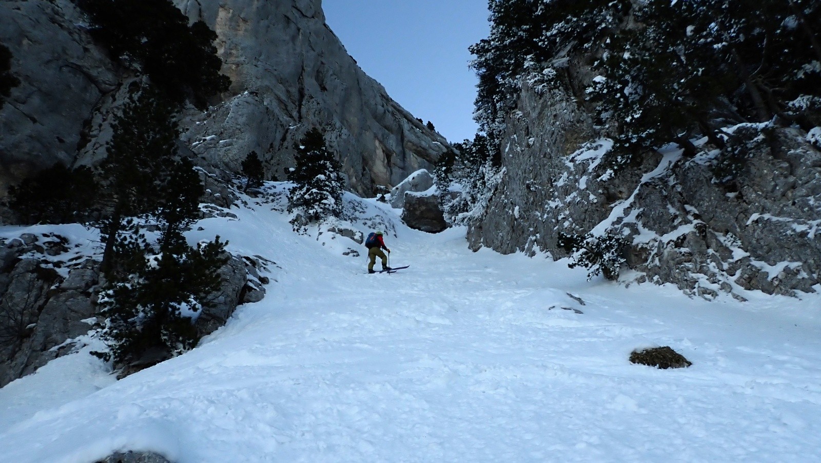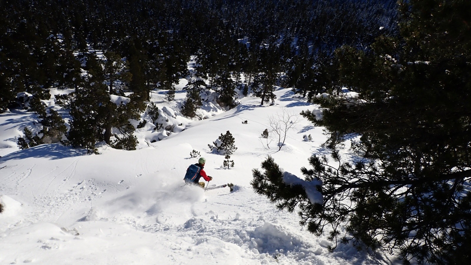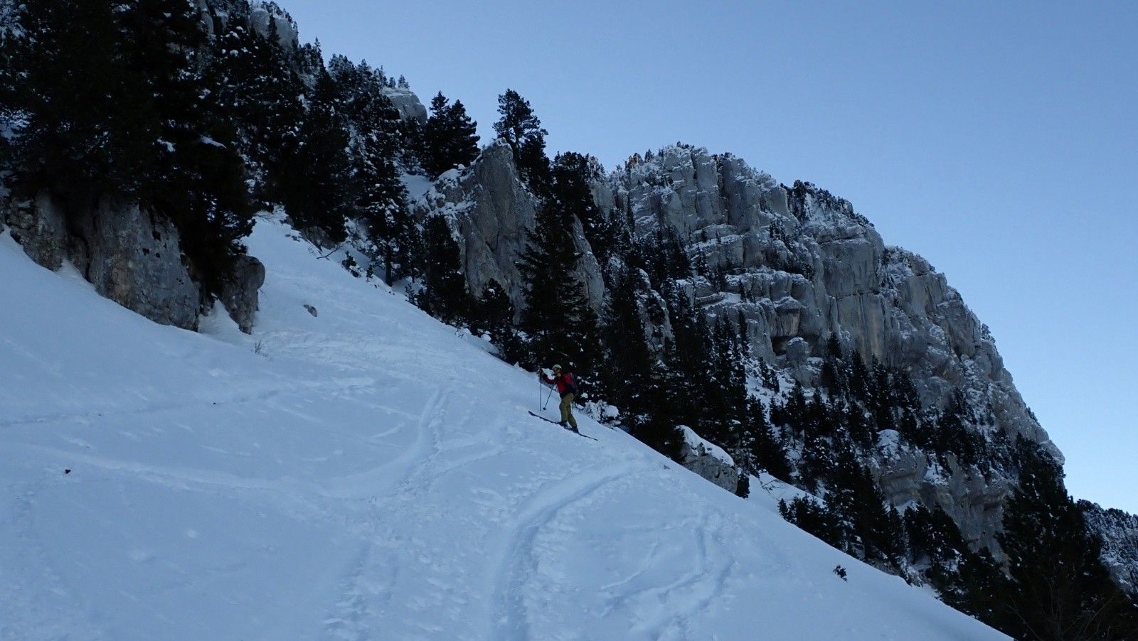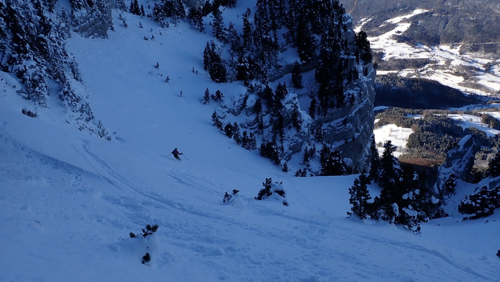 Nous avons choisit de descendre par l'itinéraire été en basculant dans un talweg en poudre