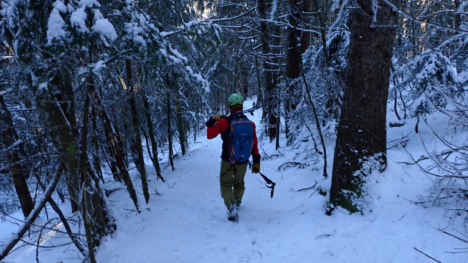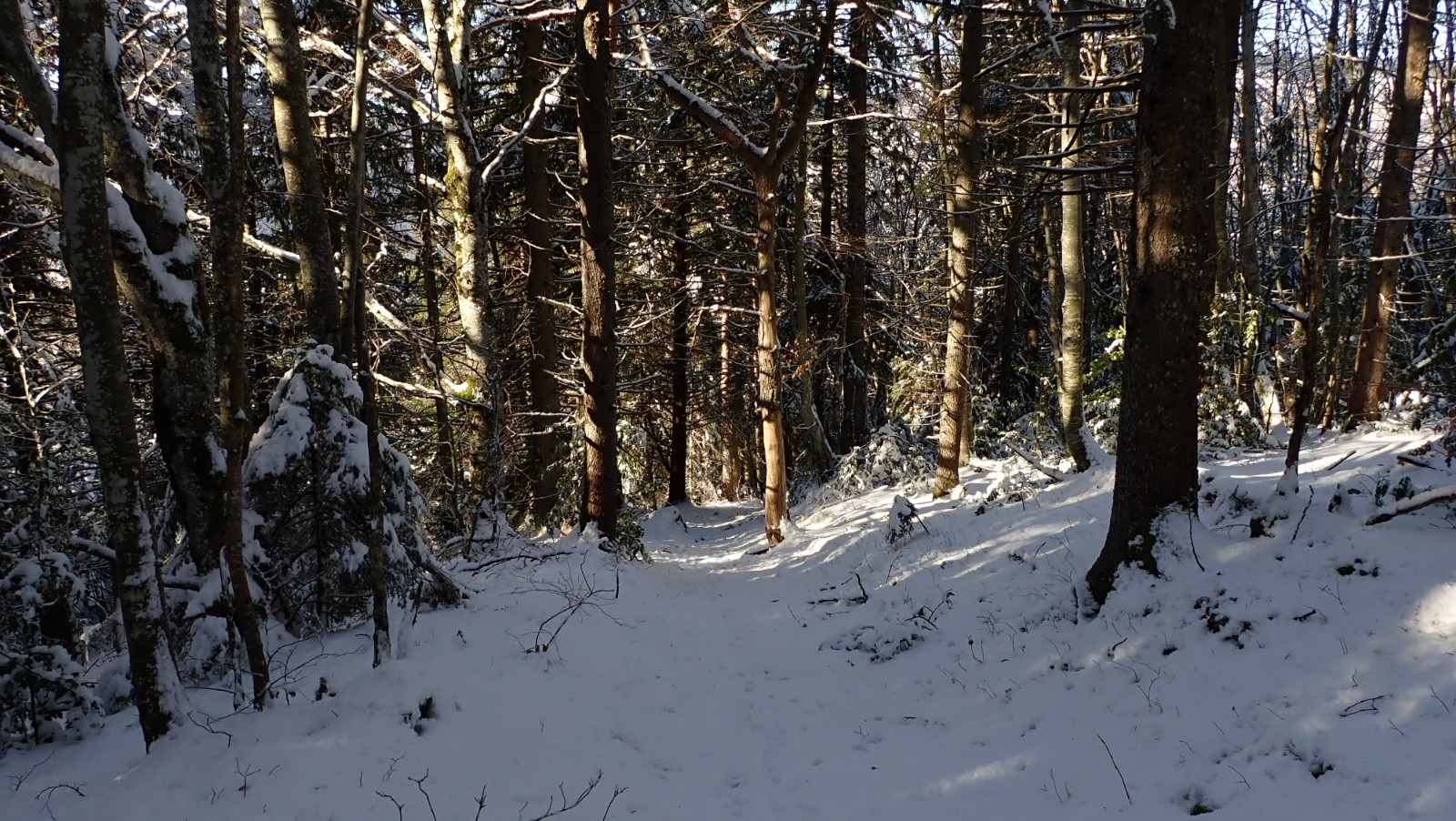 Marche pour rejoindre la piste du Granier en dessous de 1400 m