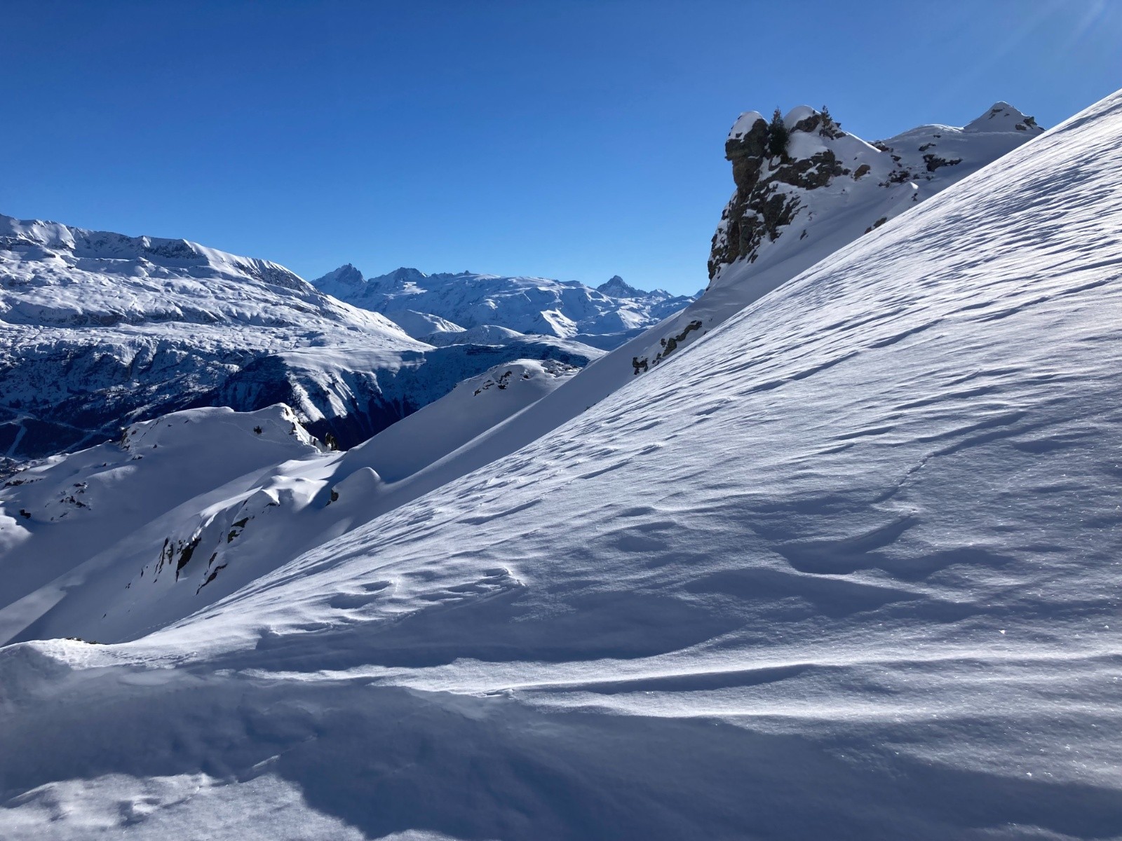 Conditions pour le ski : Excellentes au dessus de 1900m, dans les zones qui n'ont pas (ou peu) pris le soleil, ni le vent. Au soleil, transfo en cours, la neige se gorge d'eau, moins bon à skier. La trace de montée ne zippe pas. En forêt, enneigement trop faible pour skier.