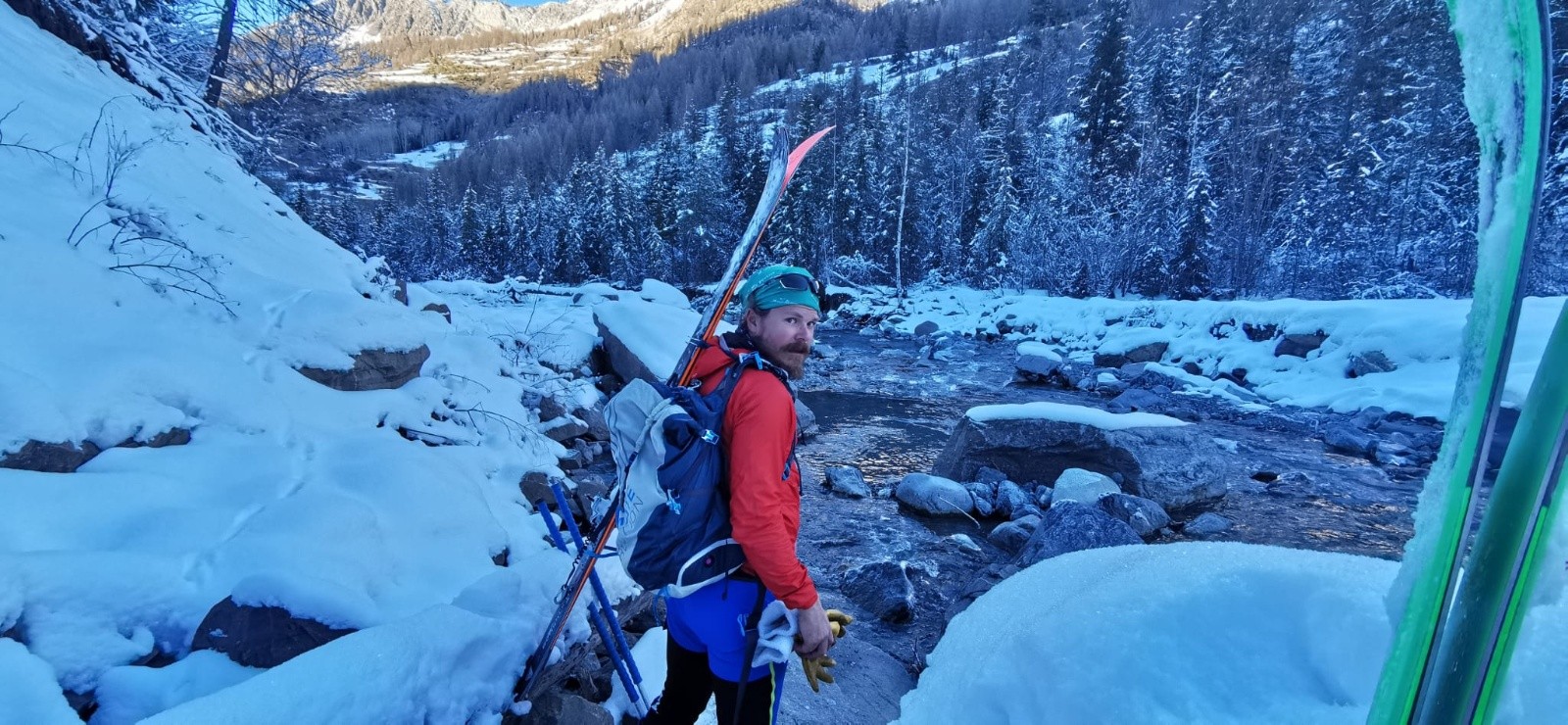 On fini par un longer la blanche ski sur le dos pour trouver un passage où traverser, ayant mal visé la passerelle bien plus en aval.