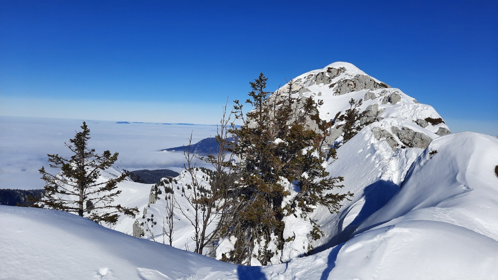 Progressant sur la crête du Grand Som, d'autres randonneurs nous décrivent les reliefs orientaux. Venu de Slovaquie visiter ce "bijou de Chartreuse", le raquettiste que nous retrouvons au sommet nous décrit les environs et les trois autres sommets de Chartreuse qui dépassent 2000m. Contrairement à son nom, le Grand Som est le plus petit des quatre.