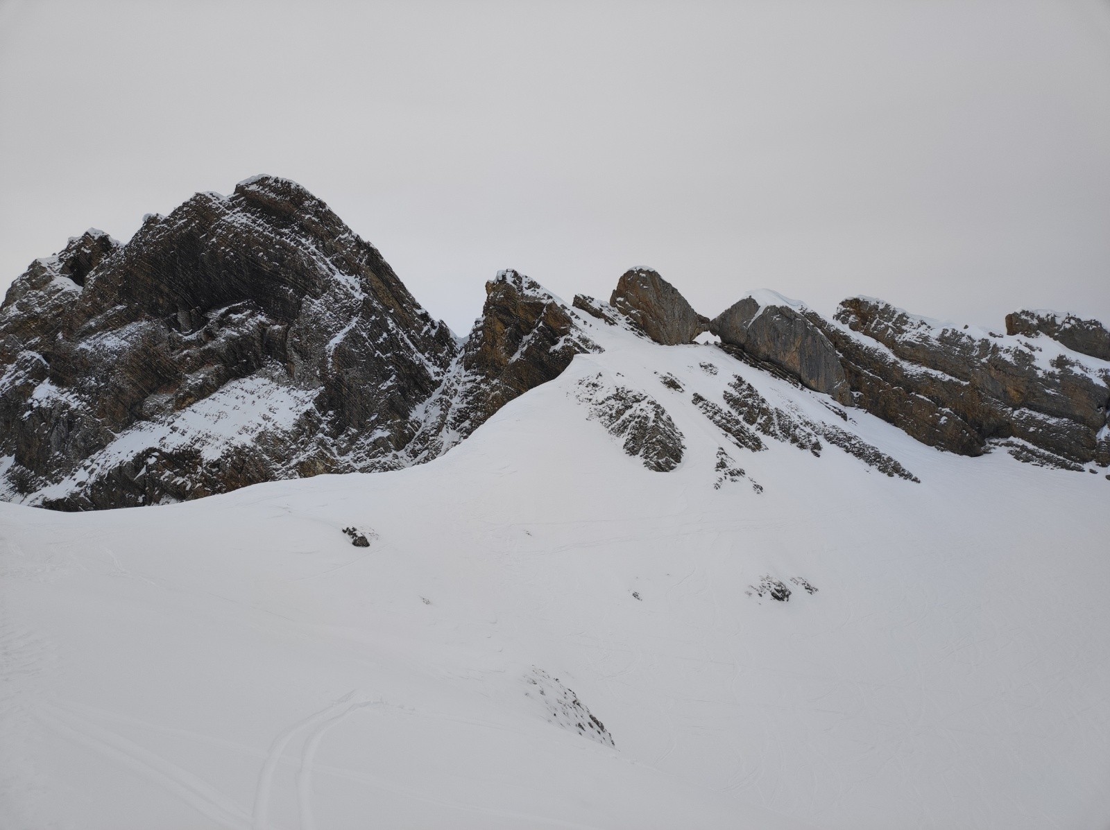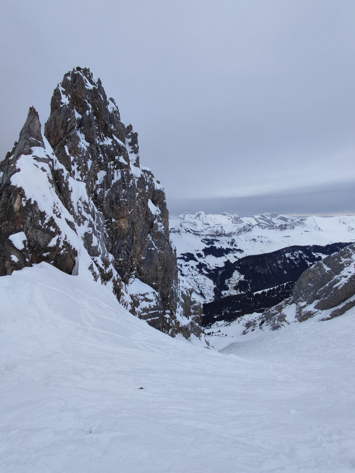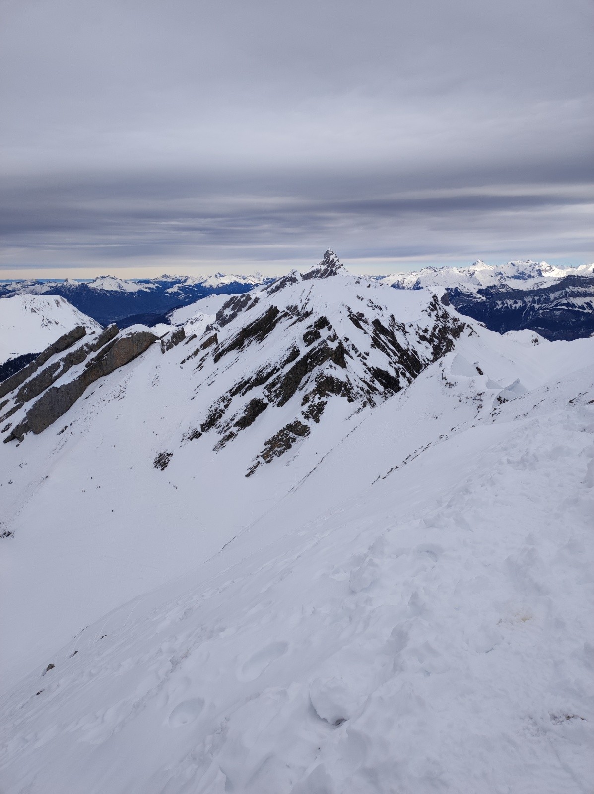 Itinéraire suivi : depuis les confins montée par la combe de Bella Cha, descente Grand Cret remonte par le couloir de Paré de joux, descente couloir E de Paré, remontée la combe de Pacally, trou de la mouche et redescente par la combe de pacally