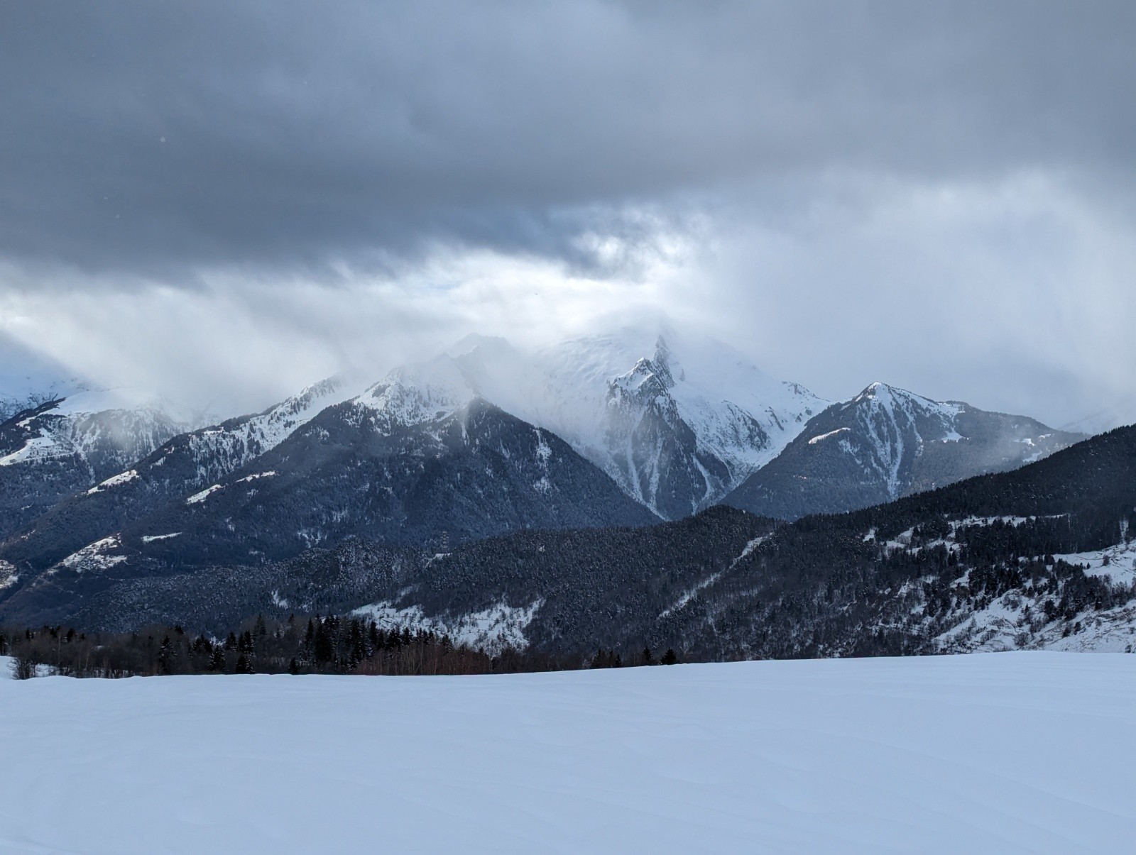 Départ à 9h du refuge du Nant du Beurre montée sur l'épaule Nord de la Pointe du Dzonfié un peu decapée, descente esthétique en solitaire côté Est, puis remontée sur l'épaule, passage par le Grand Crétet. Dans la remontée du deuxième, le jour blanc s'installe et on décide de rentrer.