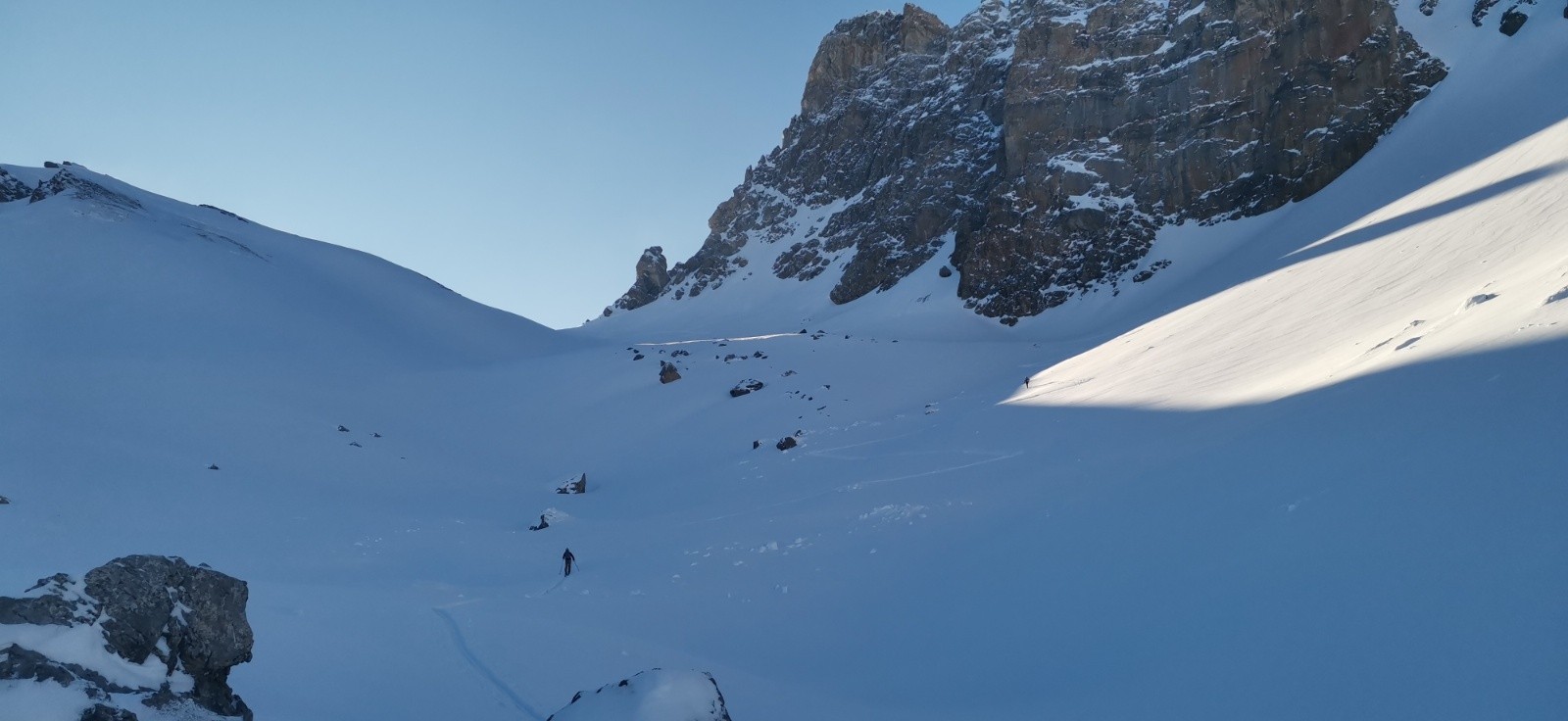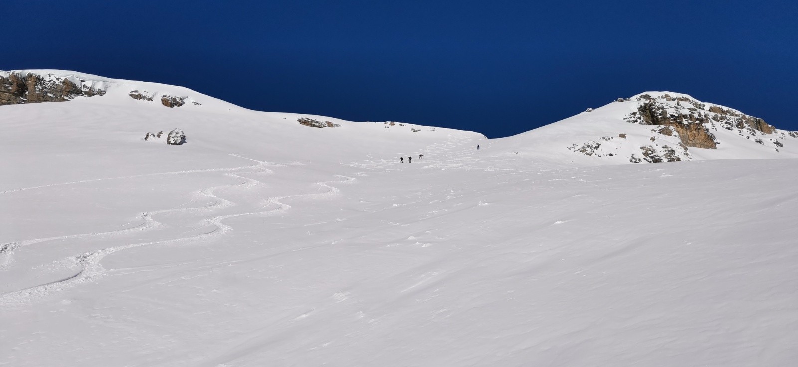 Conditions pour le ski : poudre sur la face sud du replat des génisses