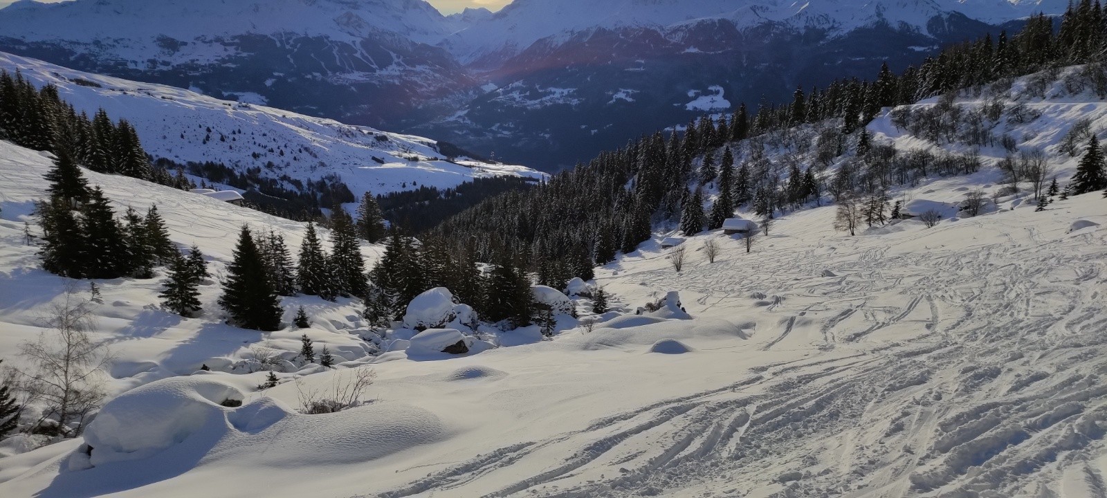 Itinéraire suivi / Compte rendu : Départ "les pars" skis au pied et montée au col de charbonnière, temps assez froid. Bascule combe direction refuge de la balme, bonne poudreuse mais malheureusement jour blanc et véritable glacière, du coup plaisir un peu moindre. Montée rapide au refuge de Presset , avec une température qui se réchauffe, ouah. Repas au refuge , une seule personne à notre arrivée puis arrivée d'un groupe d'un groupe de 6 personnes en partance sur Arêches. Vers 13H, le soleil fait son apparition et nous repartons, nous avions prévus de monter du col du grand fond mais nous avons repéré une trace sur la pointe de Presset, la face semblait en bonne condition donc changement de programme. Montée à la pointe de Presset, trace nickel, pas raide empruntant l'épaule et non la combe, superbe, un grand merci aux traceurs. Redescente sur le refuge de Presset (Sommet de la face de la face légèrement crouté mais le bas en poudreuse), puis sur le refuge de la balme ( de beaux passages en poudre, le reste sur une croute fine facile à skier). Remontée du col de Rosset avec passage du ruisseau au niveau de la balme un peu compliqué. Redescente S pour rejoindre l'itinéraire de montée , passage chapelle Saint Barnabé, vallon de La Portrette (bien trafolé sur le bas) et fin sur la route pour rejoindre le parking.