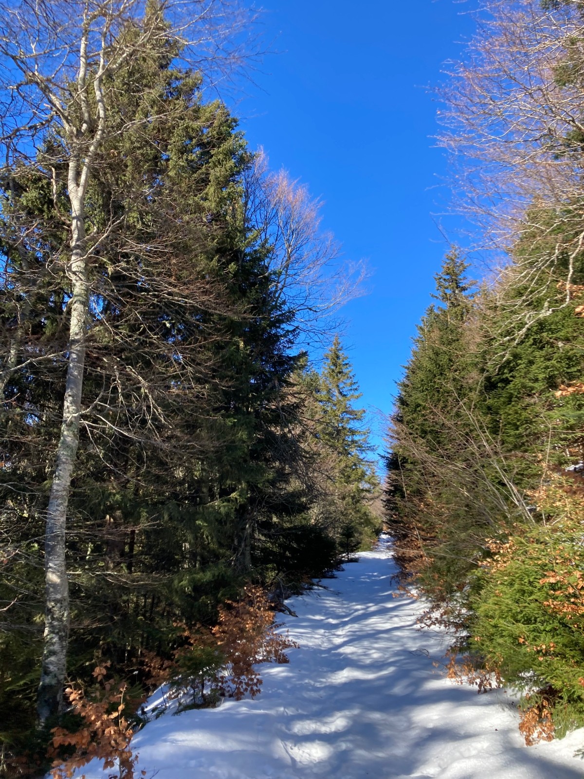 Conditions pour le ski : vitrifiée sur l’arête, transfo au soleil, chemin dur et damé.