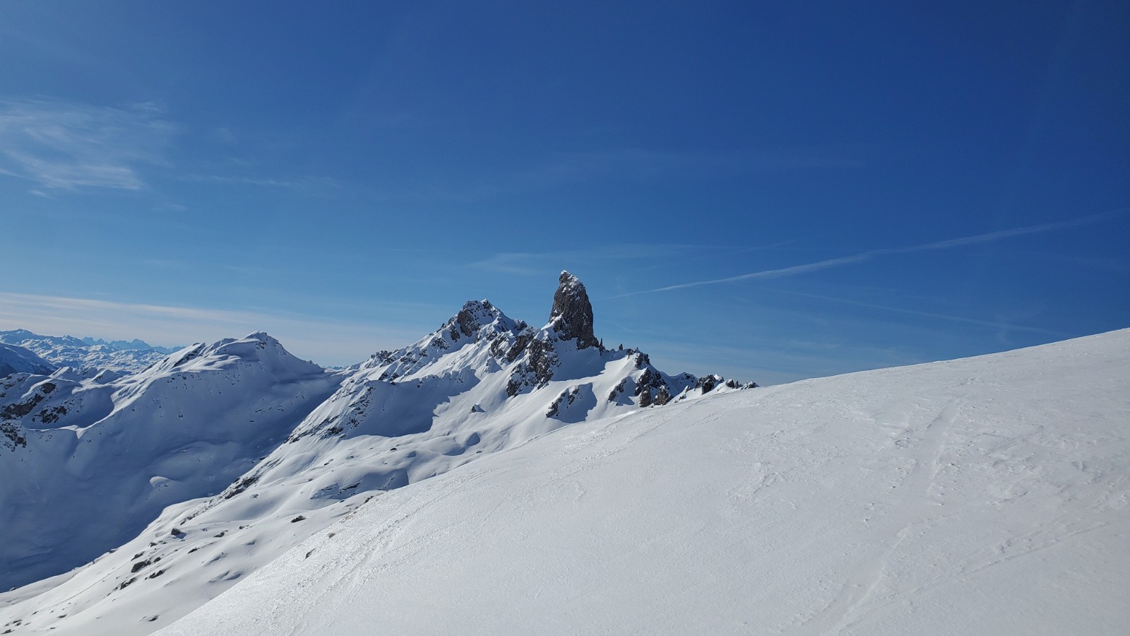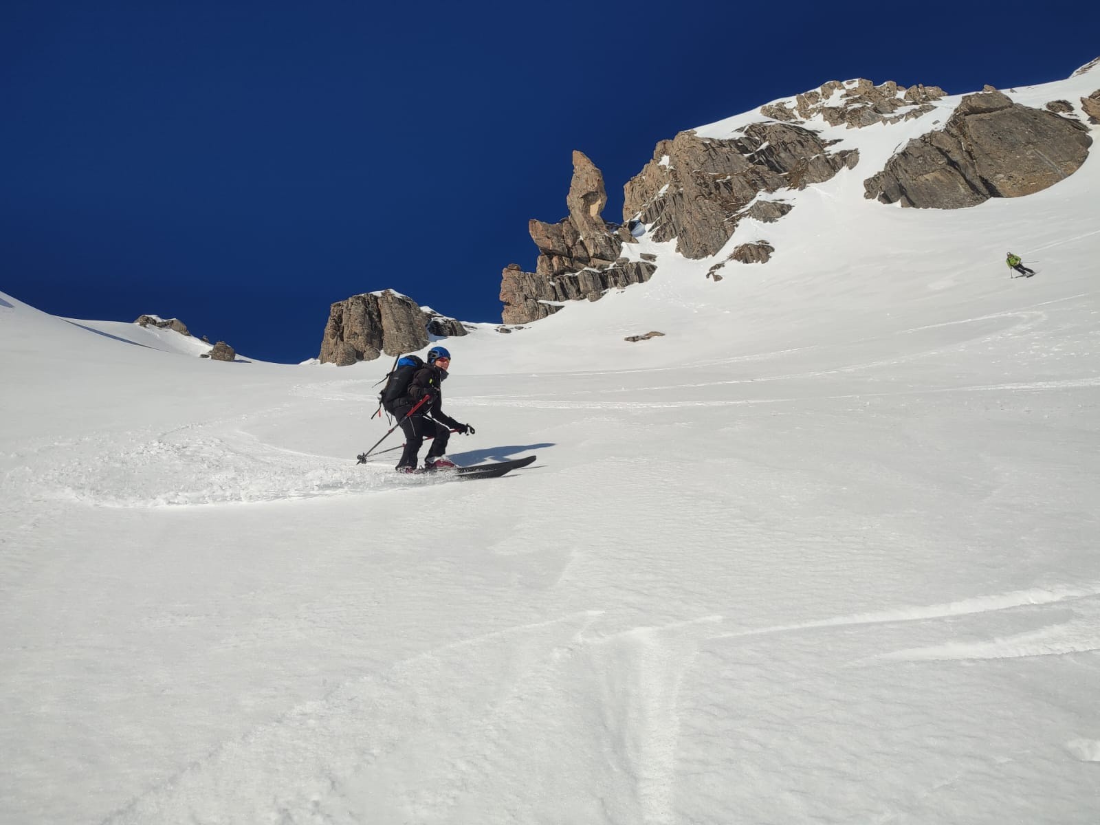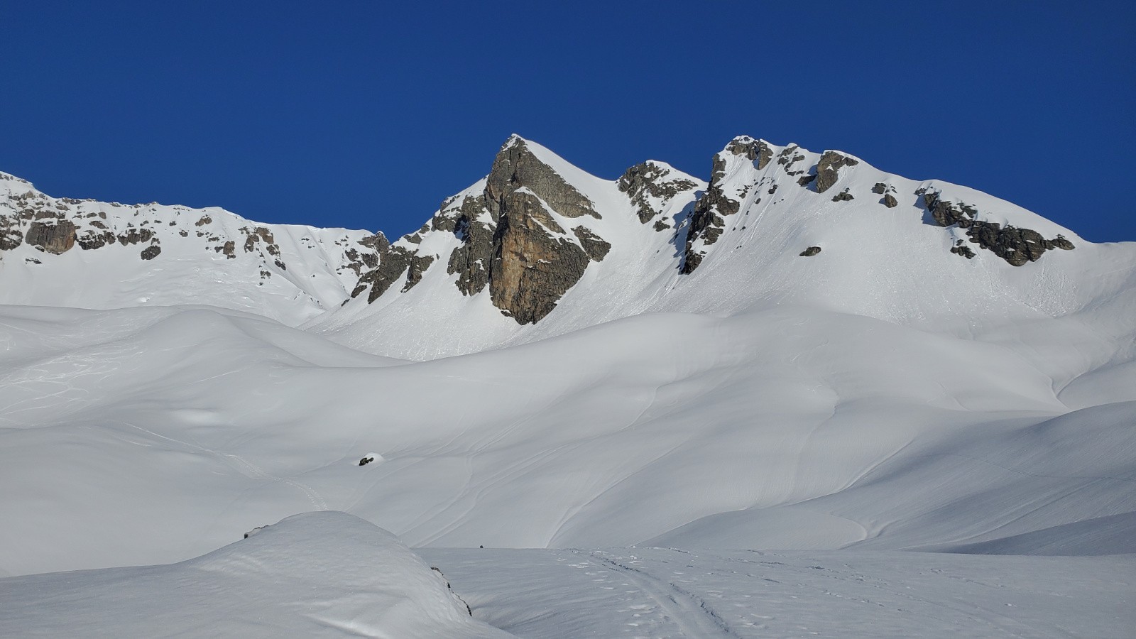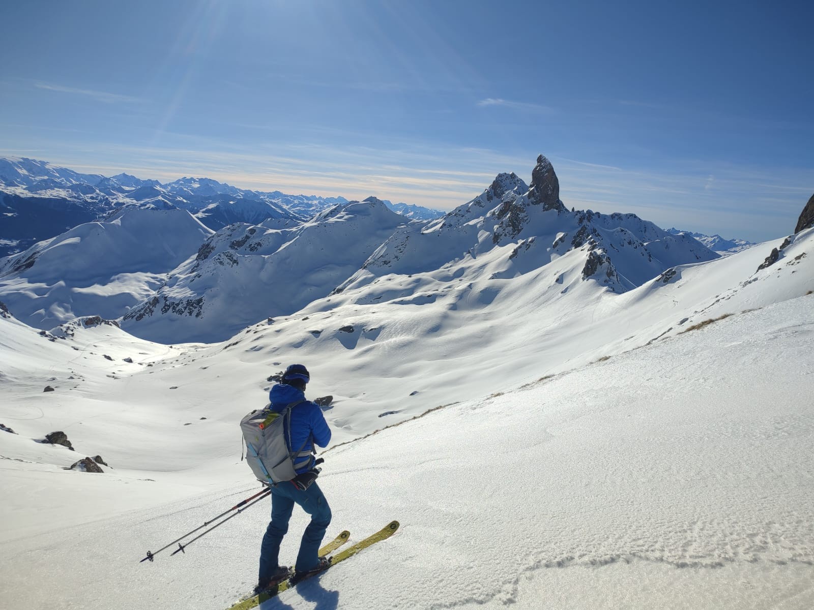 Avec Christian, Philippe et Juju. Peu de monde en montant dans le vallon, assez étonnant. La première descente est correcte avec un bon grip et quelques zones décaillées dans les contre-pentes. Remontée en couteaux à la pointe de Presset sauf pour Christian que je soupçonne d'utiliser la peau de vrais bébés phoques. Décaillage parfait à 13h. Certaines zones plus plates étaient encore dures car même si on a l'impression d'être au printemps, les rayons sont encore bas en ce mois de janvier. Une équipe qui trainait pas pour ce beau tour.
