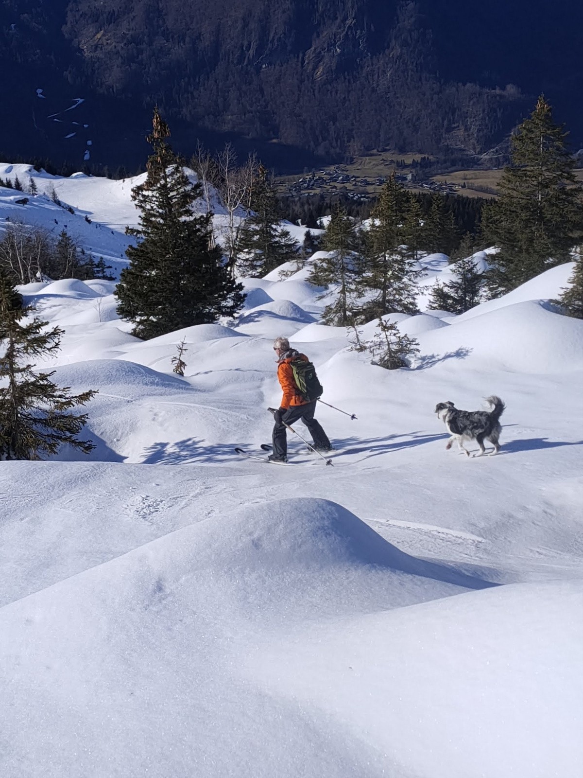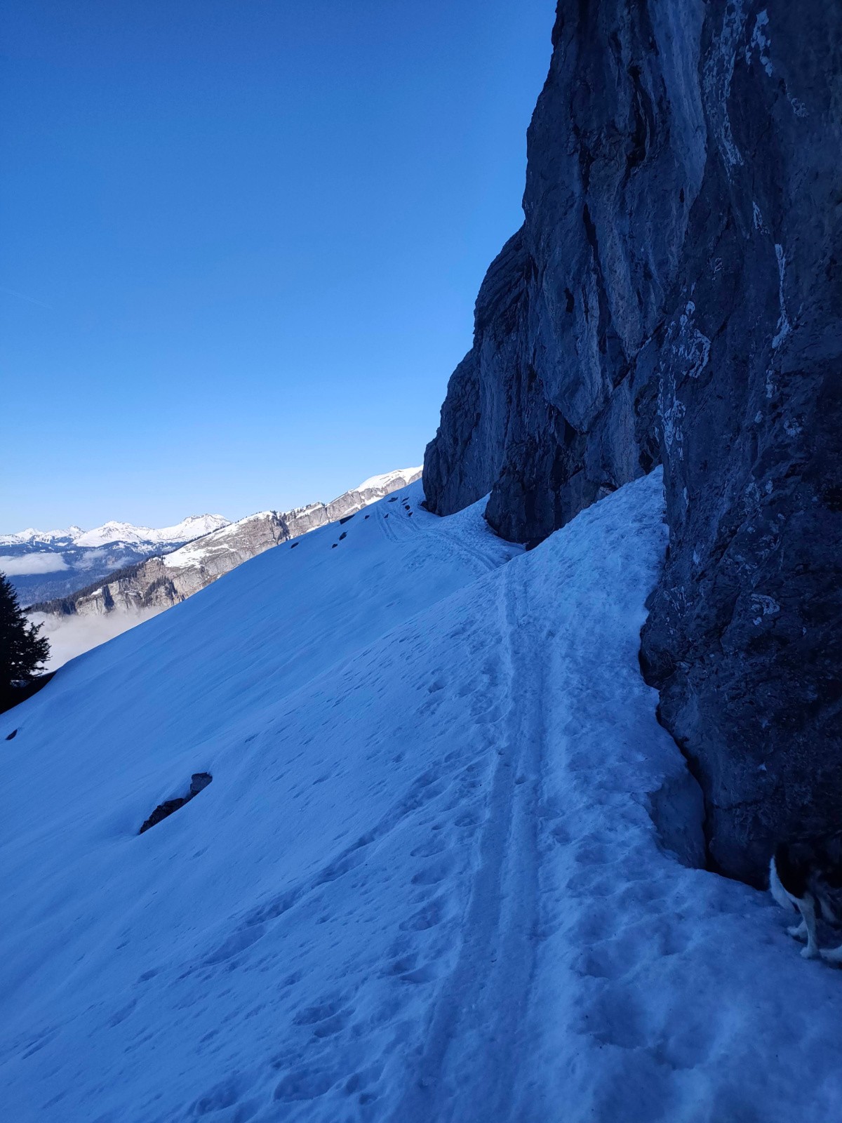 Je mets "bonne" conditions sur l'ensemble malgré le portage, malgré la neige béton, bah, faut juste aimer le bruit des skis sur le dur ..! et ne pas trop s'inquiéter des cris plaintifs de Joy la toutoune qui n'apprécie pas la neige plus dure que ses nonosses.!!!