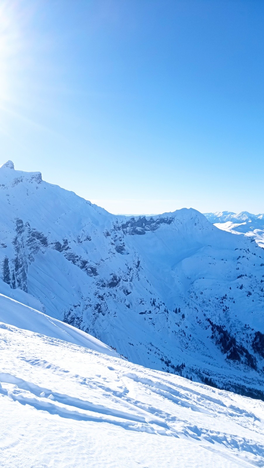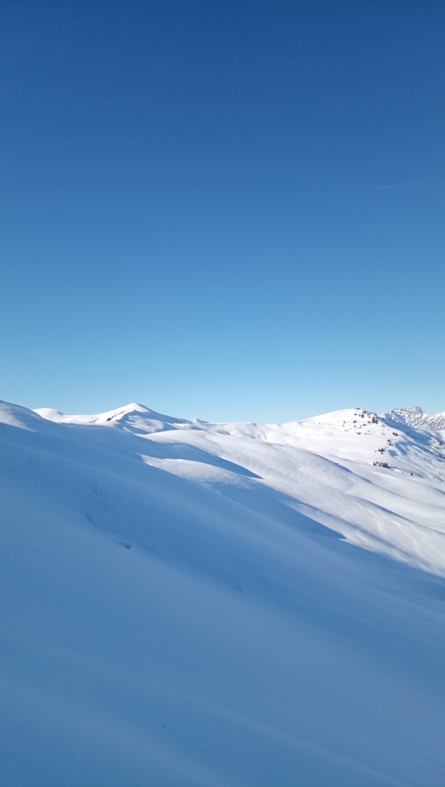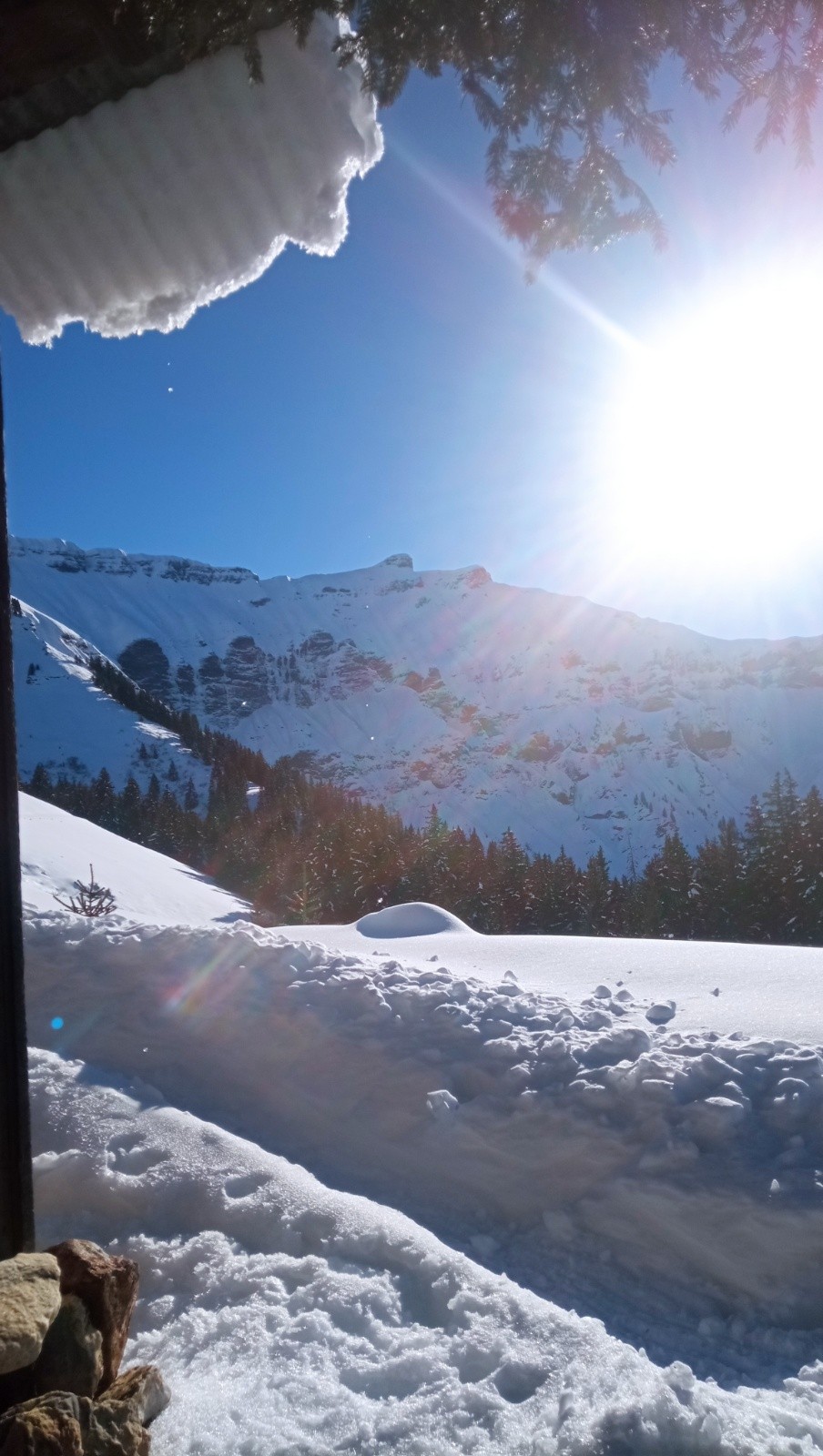 Conditions pour le ski : neige poudreuse 40cm froide face nord qui commence a chauffer sur les autres versants