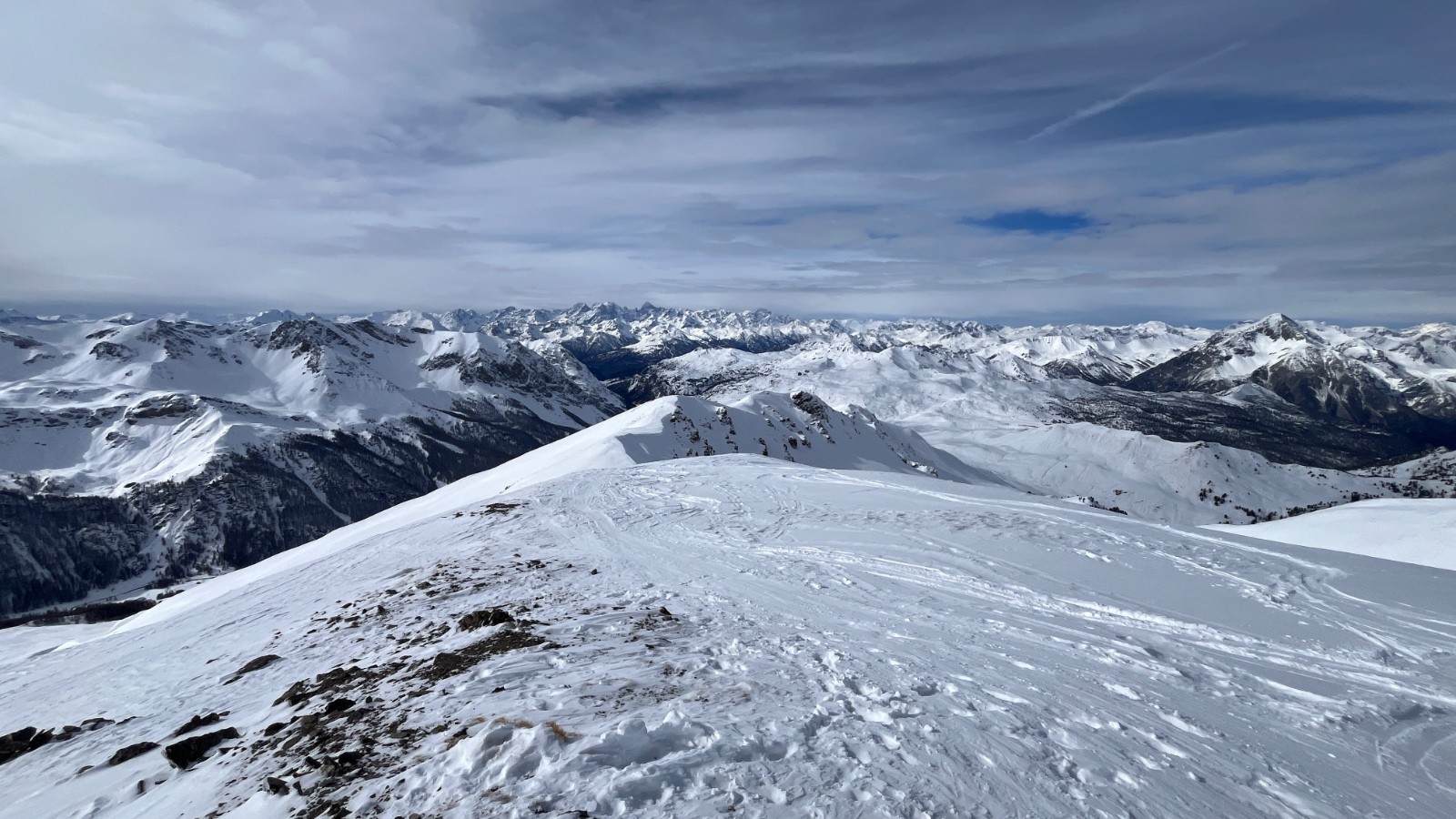 Météo/températures : nombreux voiles nuageux élevés, mais plutôt lumineux, sauf en fin de matinée où nous avons eu jour blanc pendant 1h00 - 1h30. Températures de saison, quasiment pas de vent même au sommet.