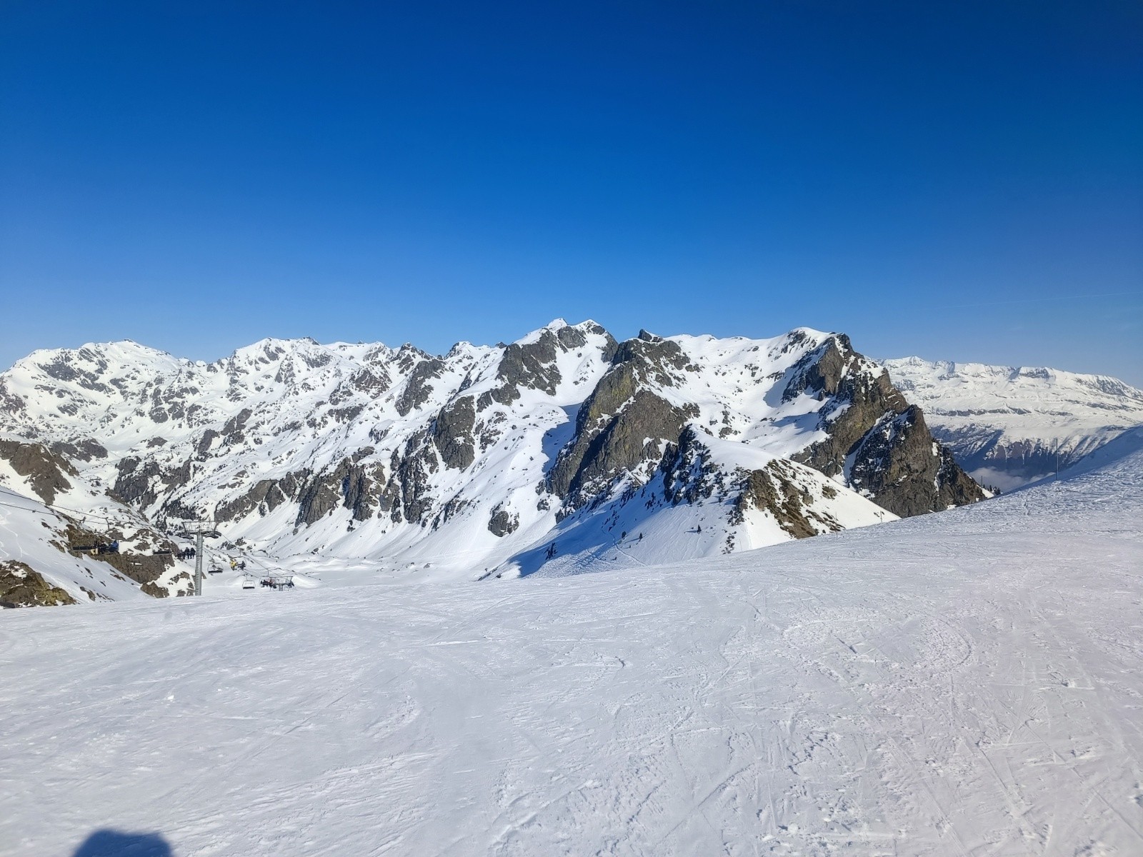 çà cache certes d'autres joli sommet, mais çà cache la vallée et la station par la même occasion, et c'est simpa d'arriver dans ces nuages qui empèche le bas de trop fondre.