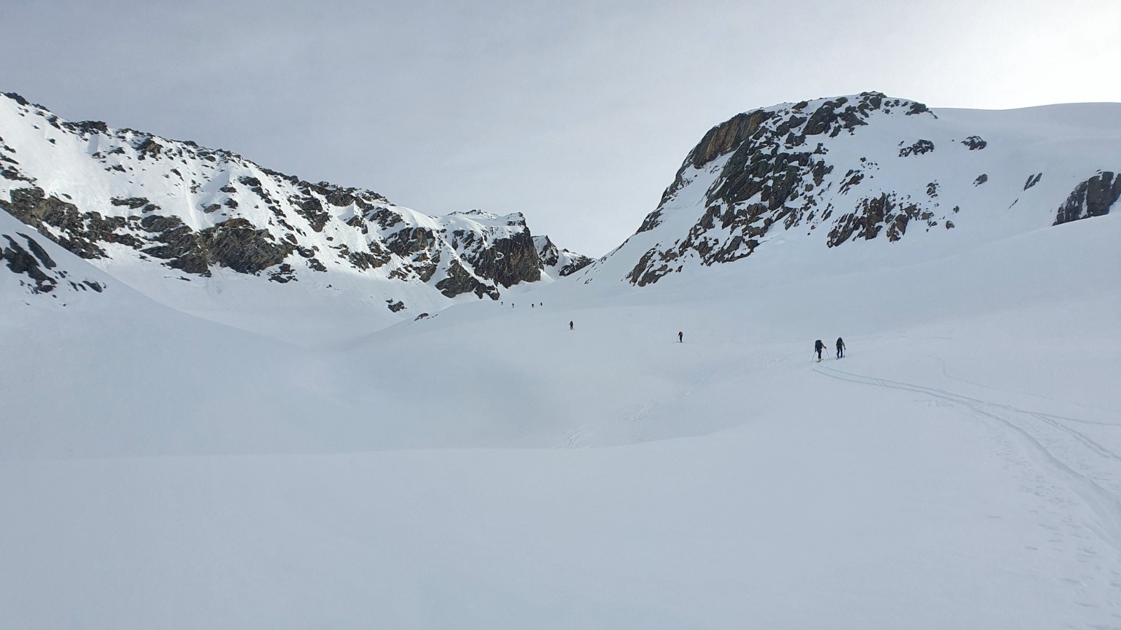 La montée au refuge est un peu longue c'est sûr mais dès qu'on passe le dernier verrou on change de dimension avec de grosses quantités de neige et un beau panorama.