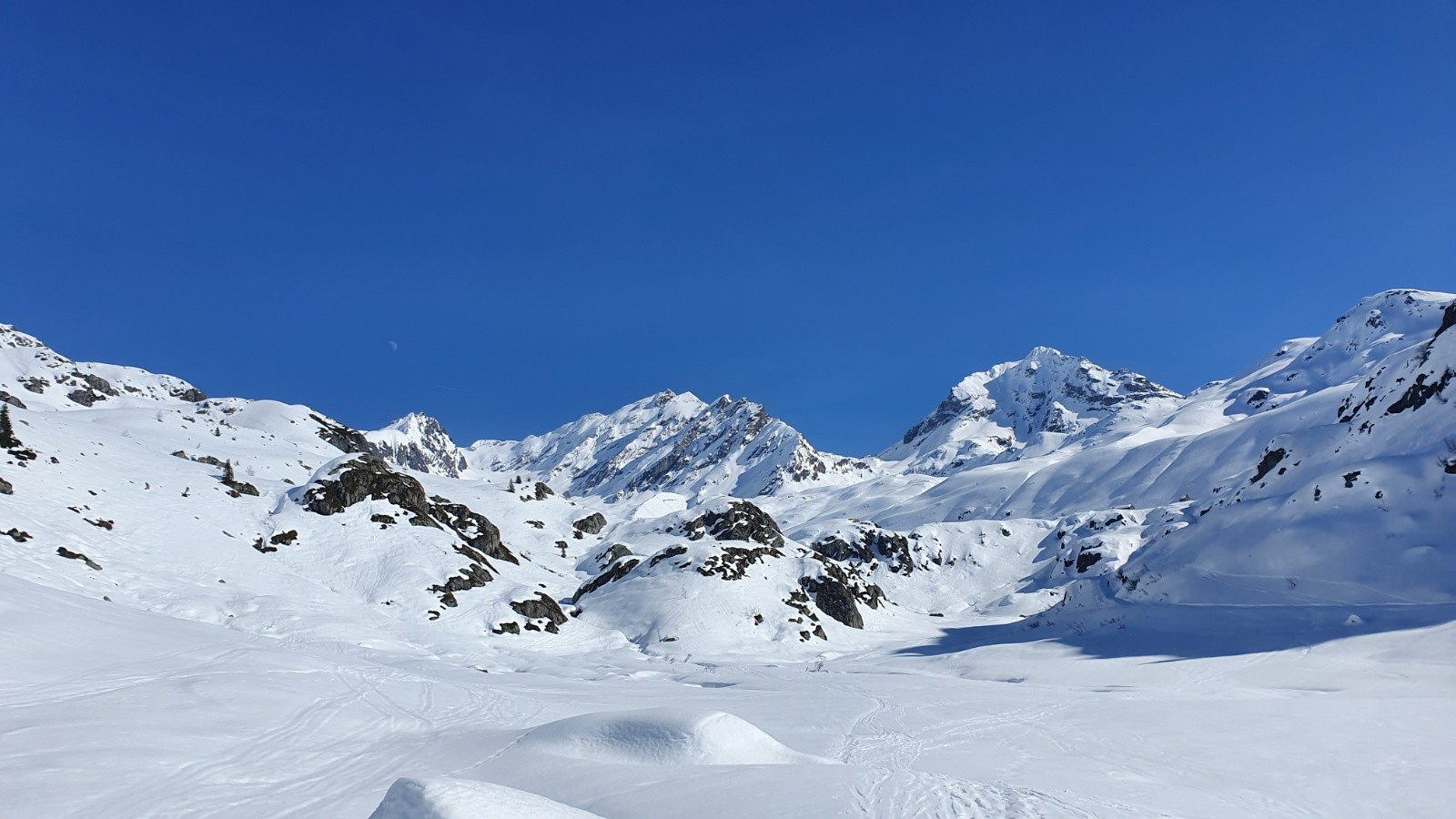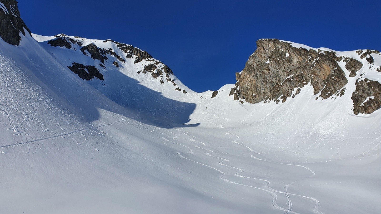 Ce week-end me semblait pas mal pour ça : neige en quantité en altitude, petit retour d'Est il y 1 semaine et pente en altitude pas raide donc potentiellement de la vieille poudre...c'est exactement ce qu'on a eu !