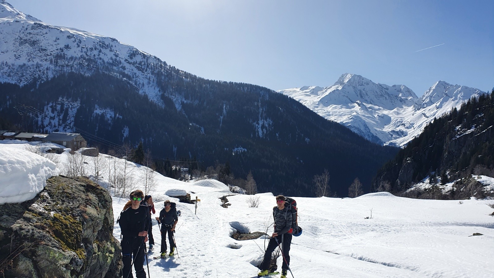 Altitude de chaussage/déchaussage : Chaussage/Déchaussage juste avant le hameau du Plan du Pré (1440m) - Déchaussage 200m dans la traversée face Sud sur la route en allant à la Savonne