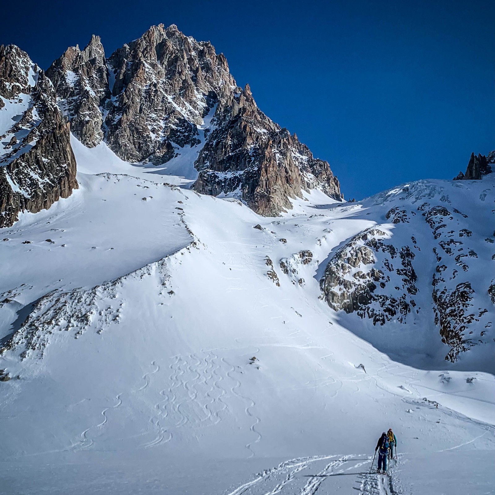Une magnifique voyage au cœur du Chardonnet, une belle bambée de 1400m de D+ pour 2700m de descente. Un beau couloir qui se mérite en faisant la trace !!!